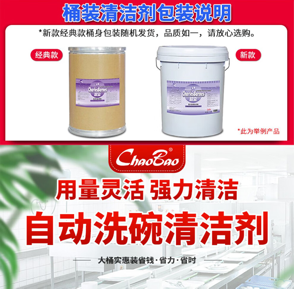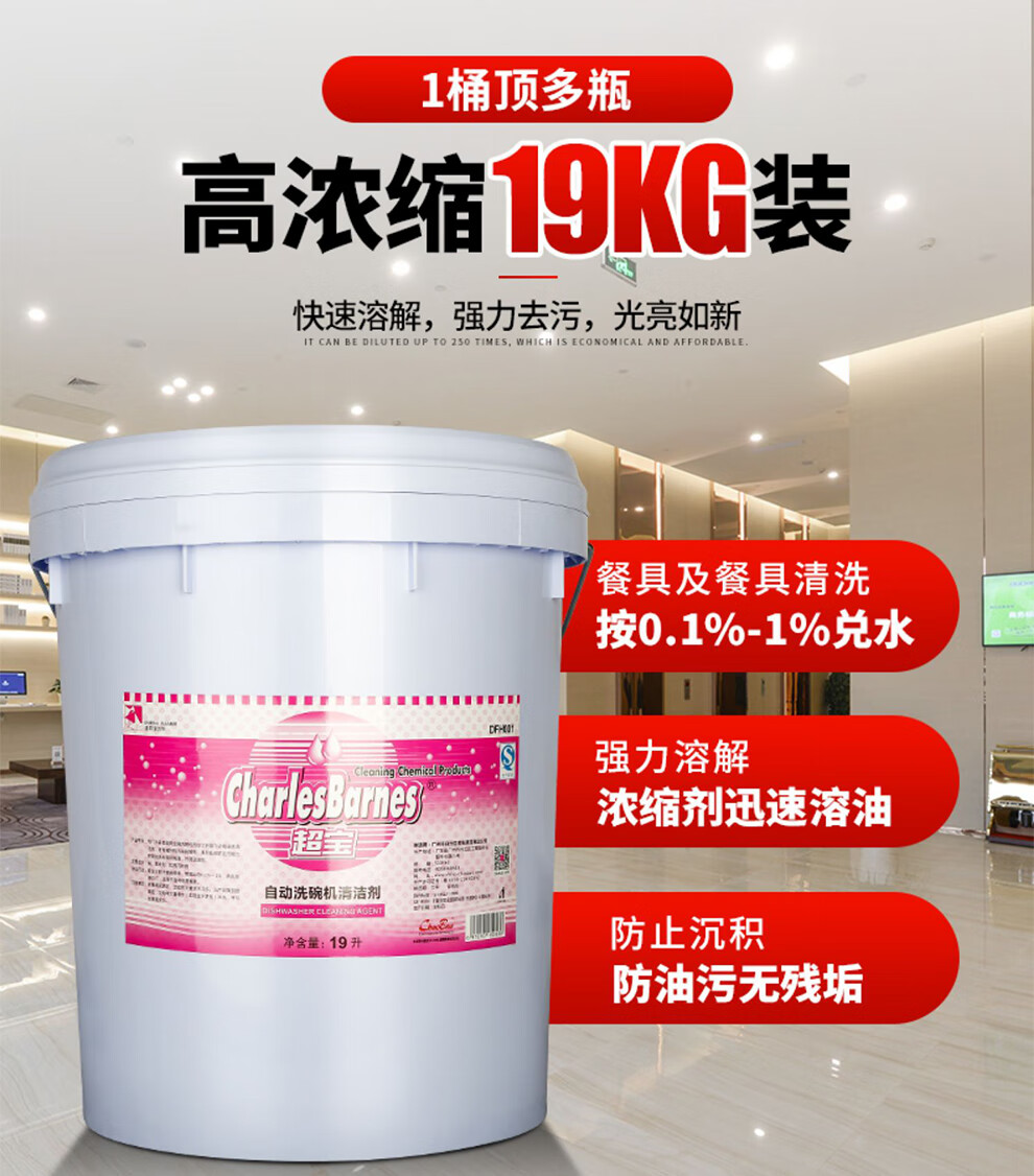 Baiyun Chaobao cleaning automatic dishwasher detergent DFH001 commercial dishwashing factory high-efficiency detergent 19 liters large barrel for hotel canteen restaurant kitchen restaurant dishwashing Chaobao automatic dishwasher detergent 19L/one barrel