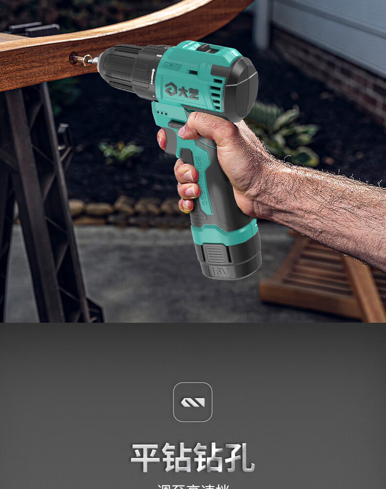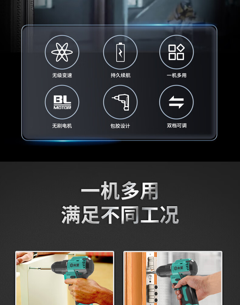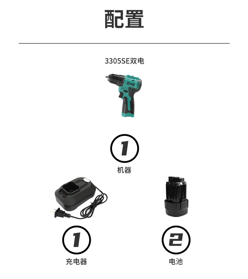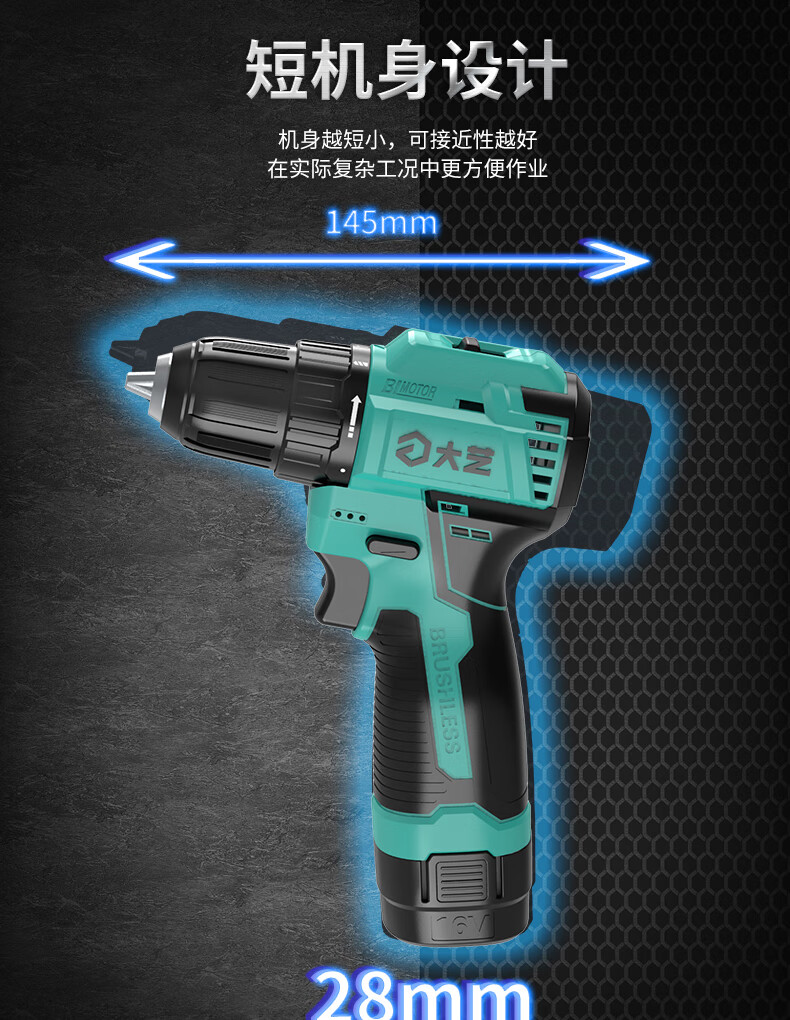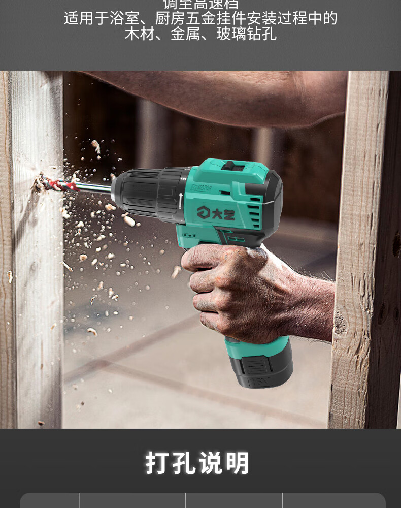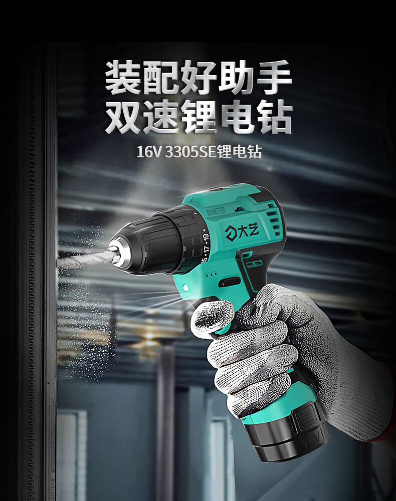 Dayi Rechargeable Drill Brushless Q3-3305S Hand Electric Drill Home and Industrial Dual-Purpose Dual-Speed Rechargeable Multi-Function Flashlight Q3-3305SEA Two Batteries and One Charge Standard 2.0Ah