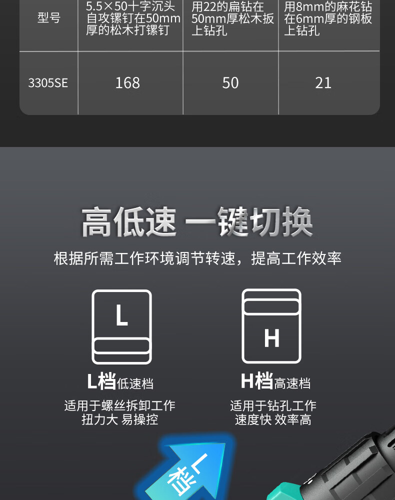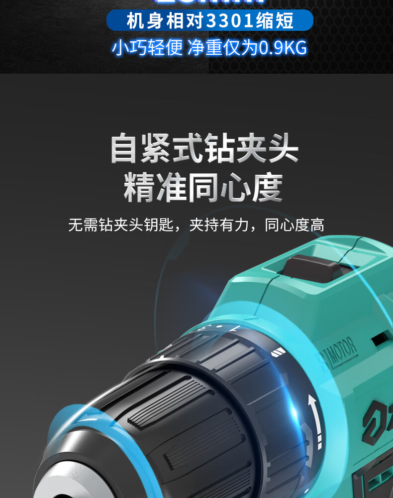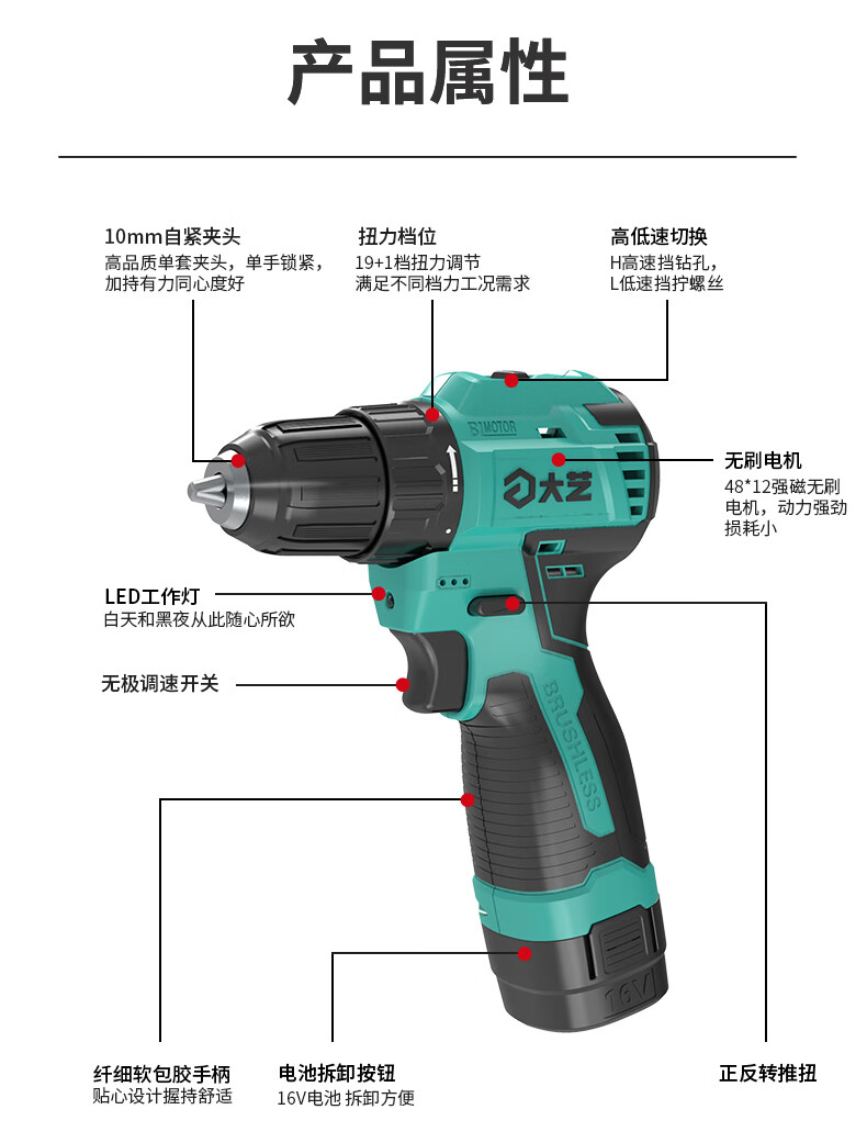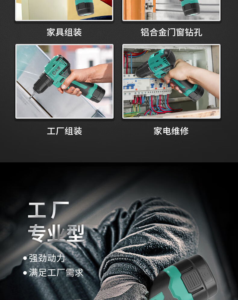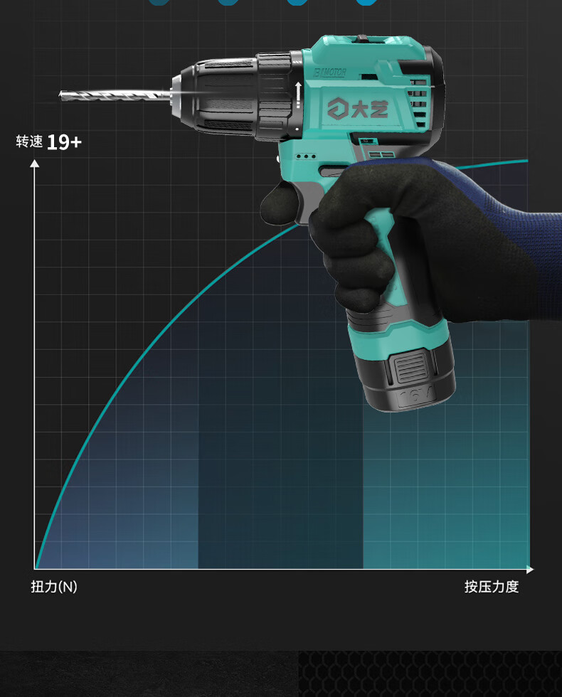 Dayi Rechargeable Drill Brushless Q3-3305S Hand Electric Drill Home and Industrial Dual-Purpose Dual-Speed Rechargeable Multi-Function Flashlight Q3-3305SEA Two Batteries and One Charge Standard 2.0Ah