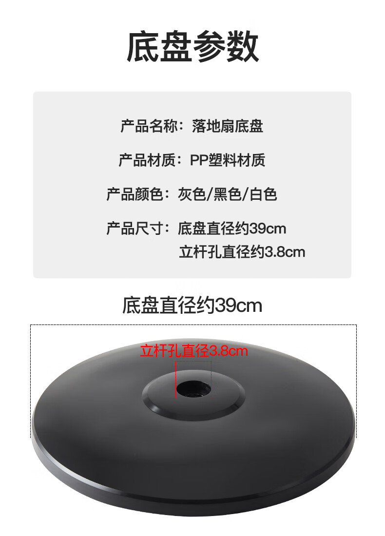 Kadishe is suitable for Midea Gree Airmate Pioneer Fan Accessories Complete Fan Base Floor Fan Universal Chassis Bottom Plate Screws Black Base + Pole Set 22mm