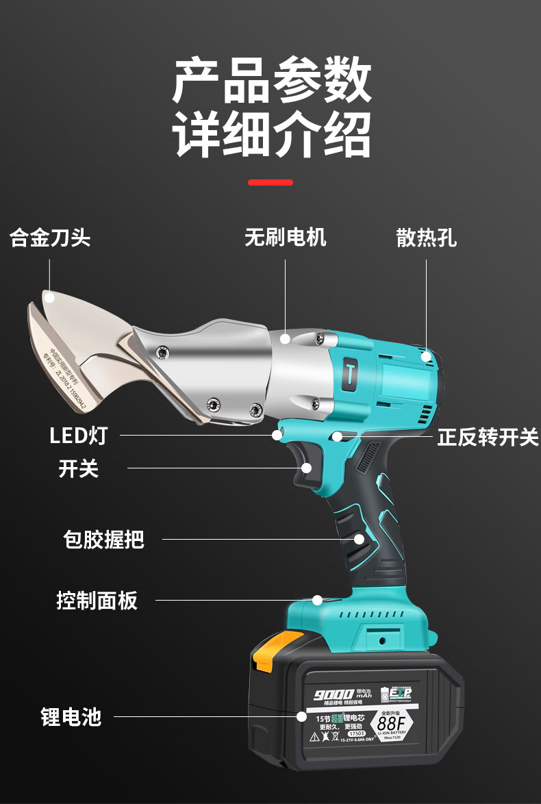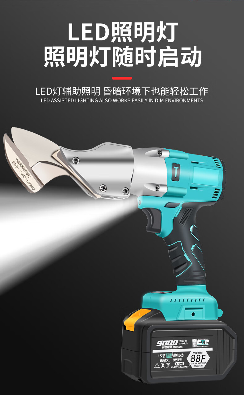 Ruishi Dayi electric scissors rechargeable iron scissors industrial color steel tile metal cutting handheld lithium electric scissors Ruishi Dayi iron scissors 88F two batteries and one charger