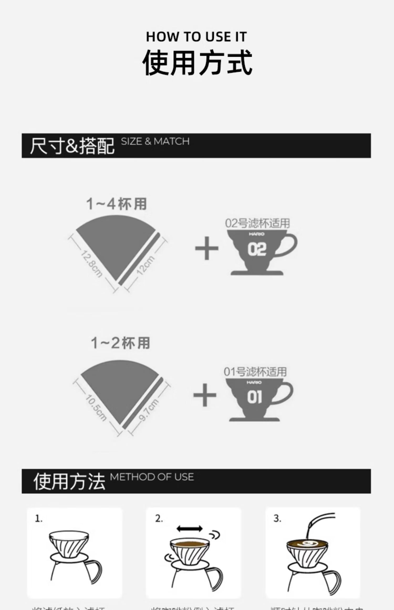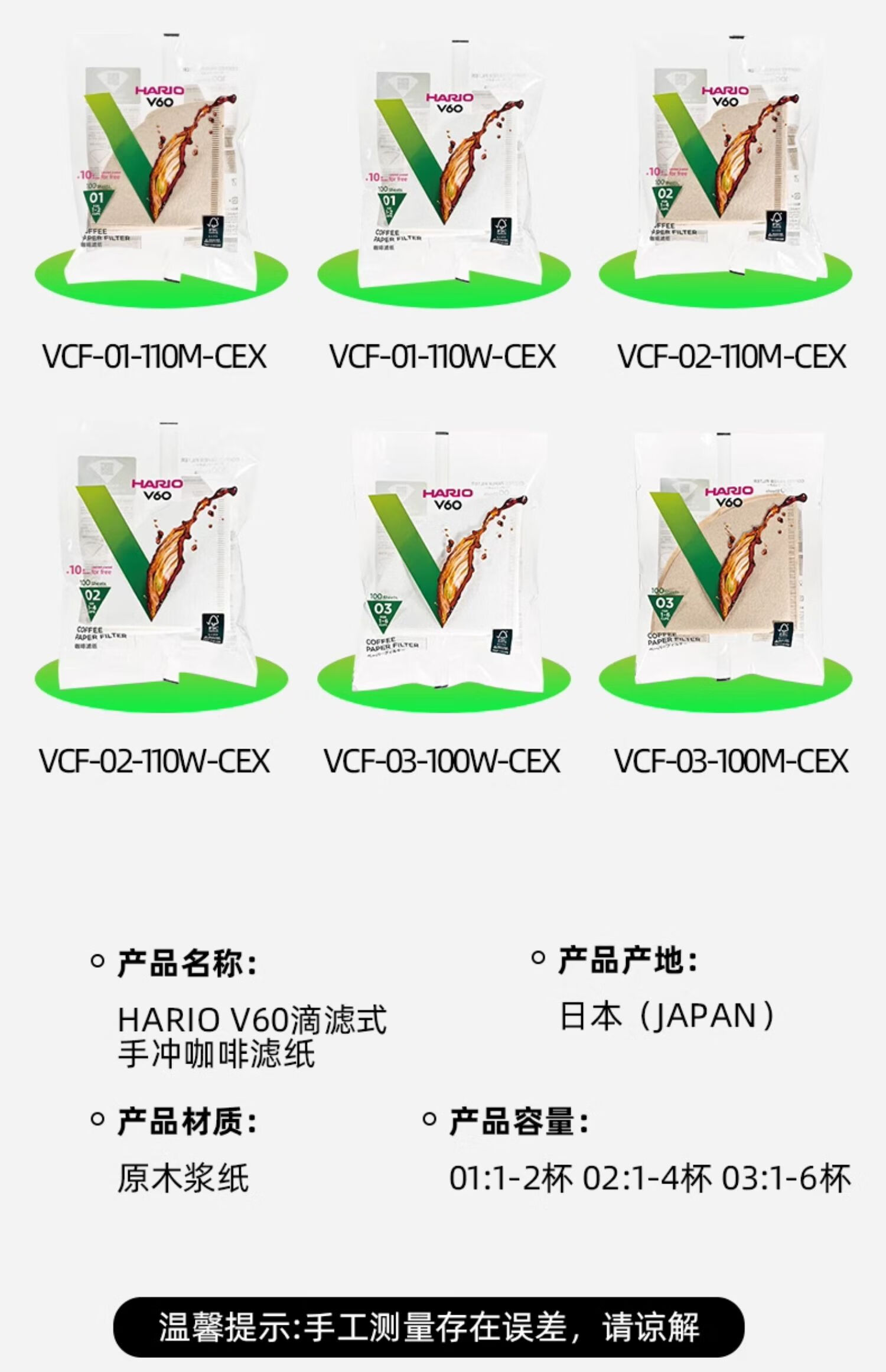 HARIO coffee filter paper fan-shaped hand-brew filter paper V60 coffee filter paper coffee filter bag VCF V02 log bag 110 pieces