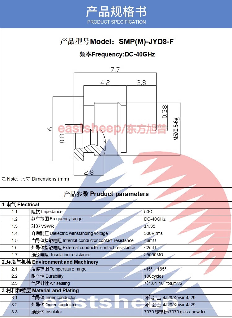 Oriental Xupu SMP(M)-JYD8-F SMP full escapement SMP glass sintered vacuum connector 40G SMP(M)-JYD8-F