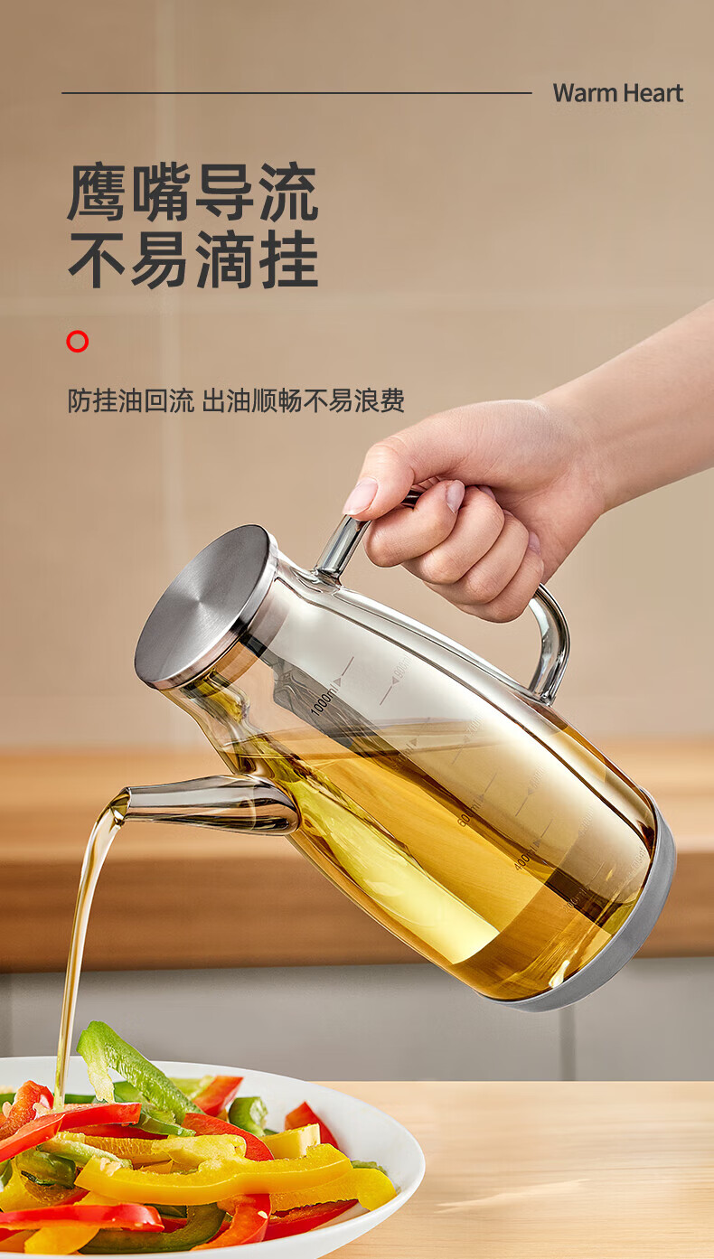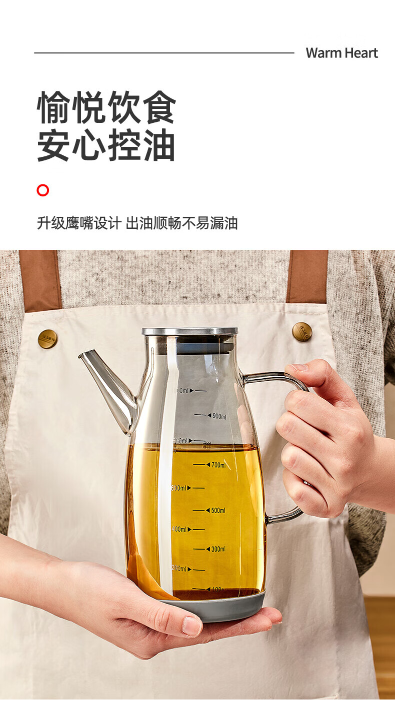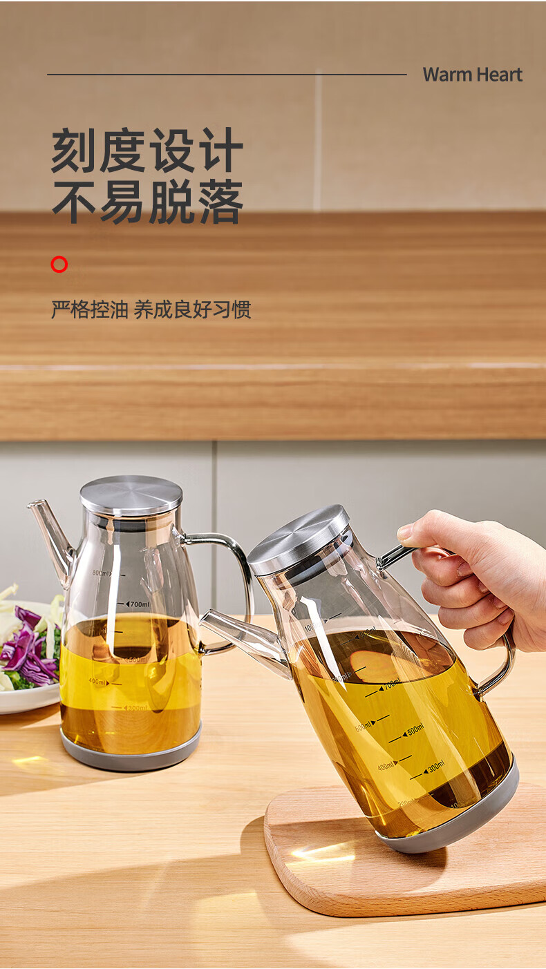 YOUQIN glass oil pot kitchen household oil bottle soy sauce vinegar seasoning bottle oil container stainless steel oil pot gray transparent color 600ml oil pot 1 pack