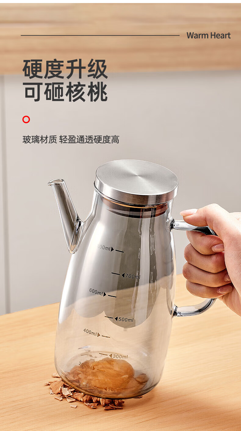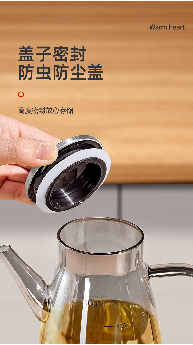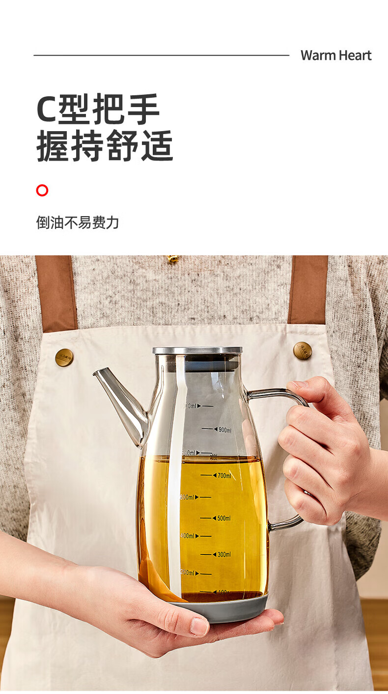 YOUQIN glass oil pot kitchen household oil bottle soy sauce vinegar seasoning bottle oil container stainless steel oil pot gray transparent color 600ml oil pot 1 pack