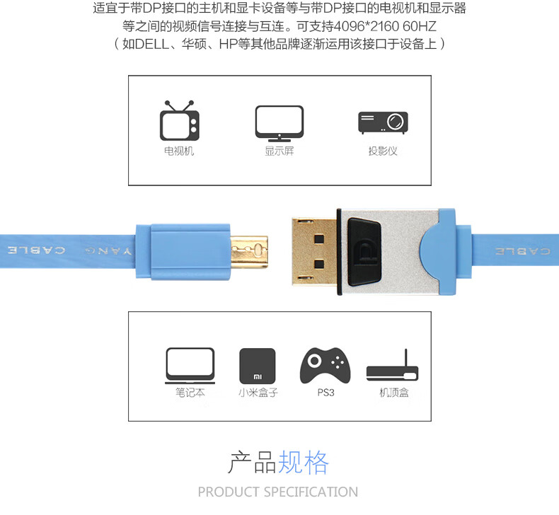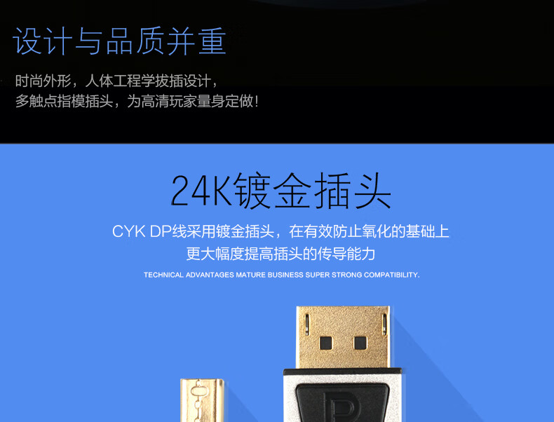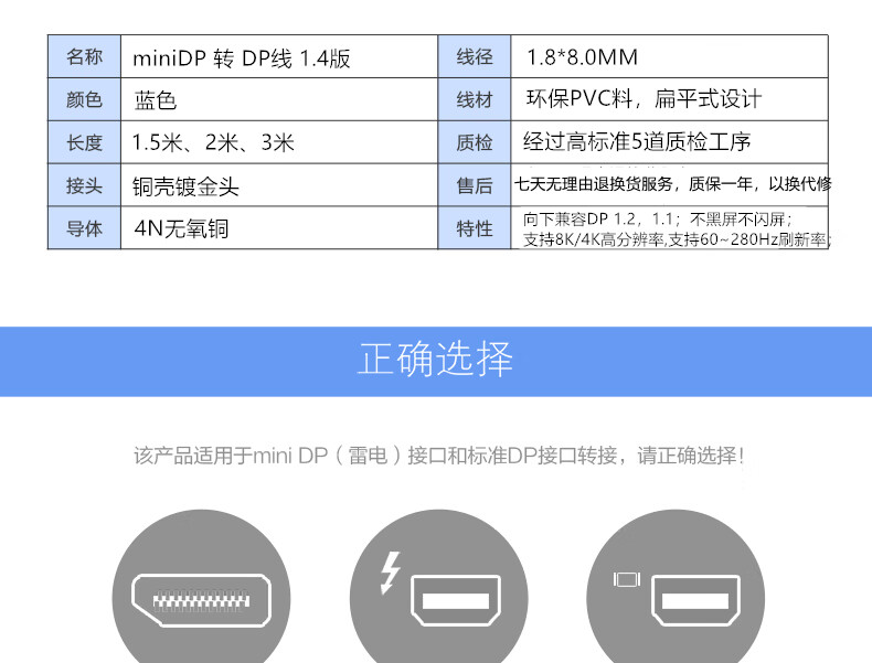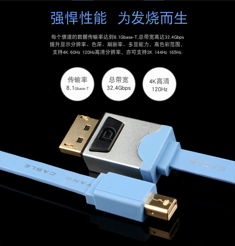 CYK thunderbolt to dp cable minidp1.4 e-sports screen 144/240hz 4K display notebook cable sky blue 3M
