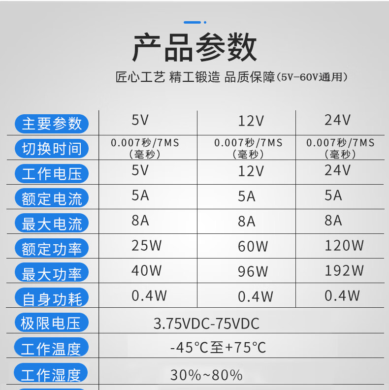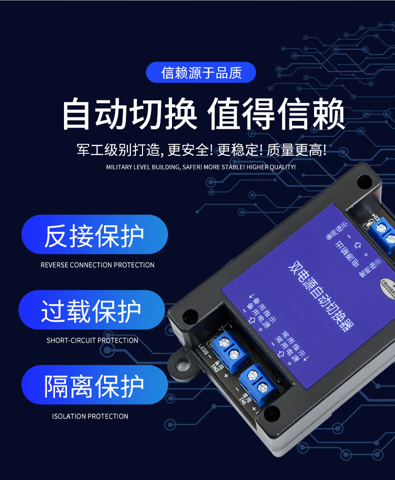 5V12V24V60VDC DC dual power automatic switcher two-way uninterruptible power outage high-speed transfer switch