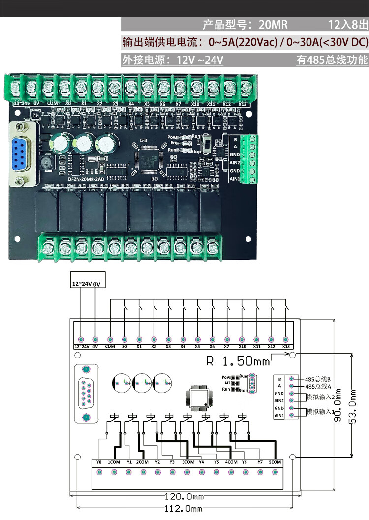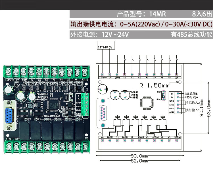 PLC industrial control board programmable logic controller simple PLC compatible with FX2NFX1NFX3U programming bare board 8-in 6-out relay