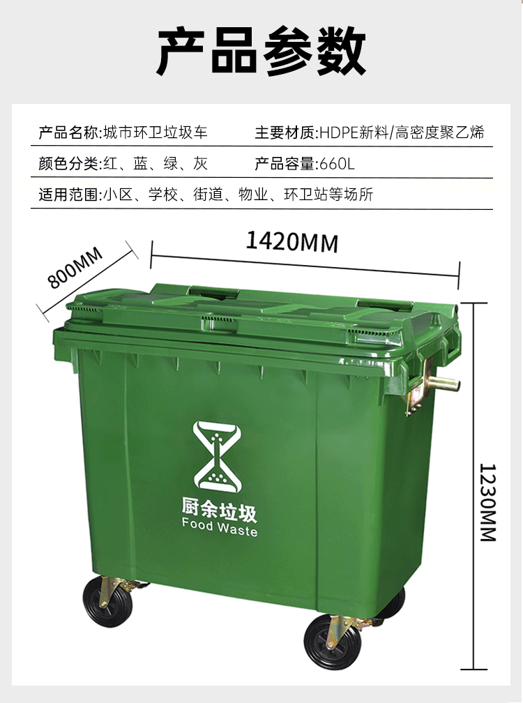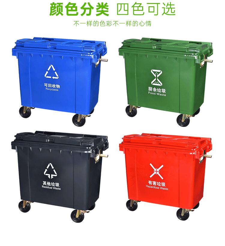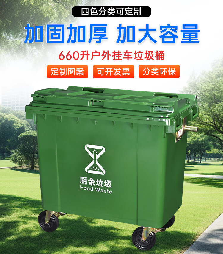 660 l large size trash can for sanitation outdoor 660 l large capacity extra large municipal trash can for property factory use 660 l special solid type-yellow wheel with cover