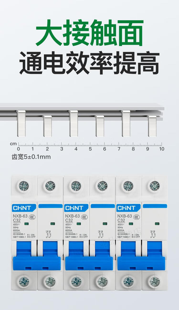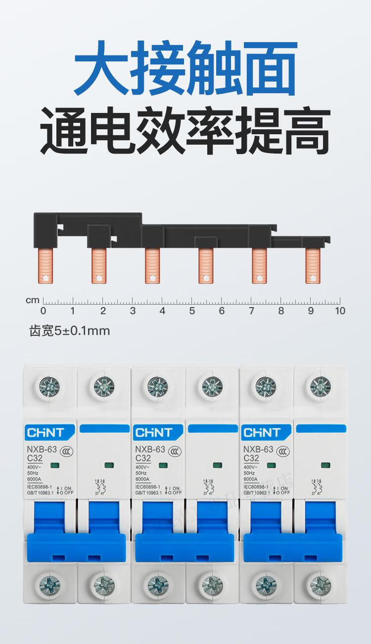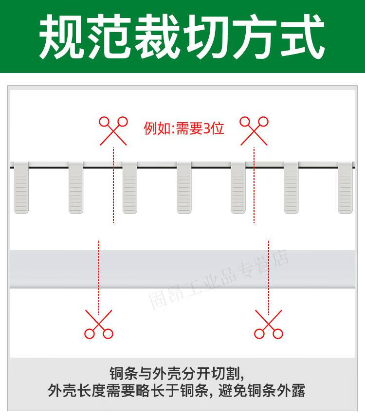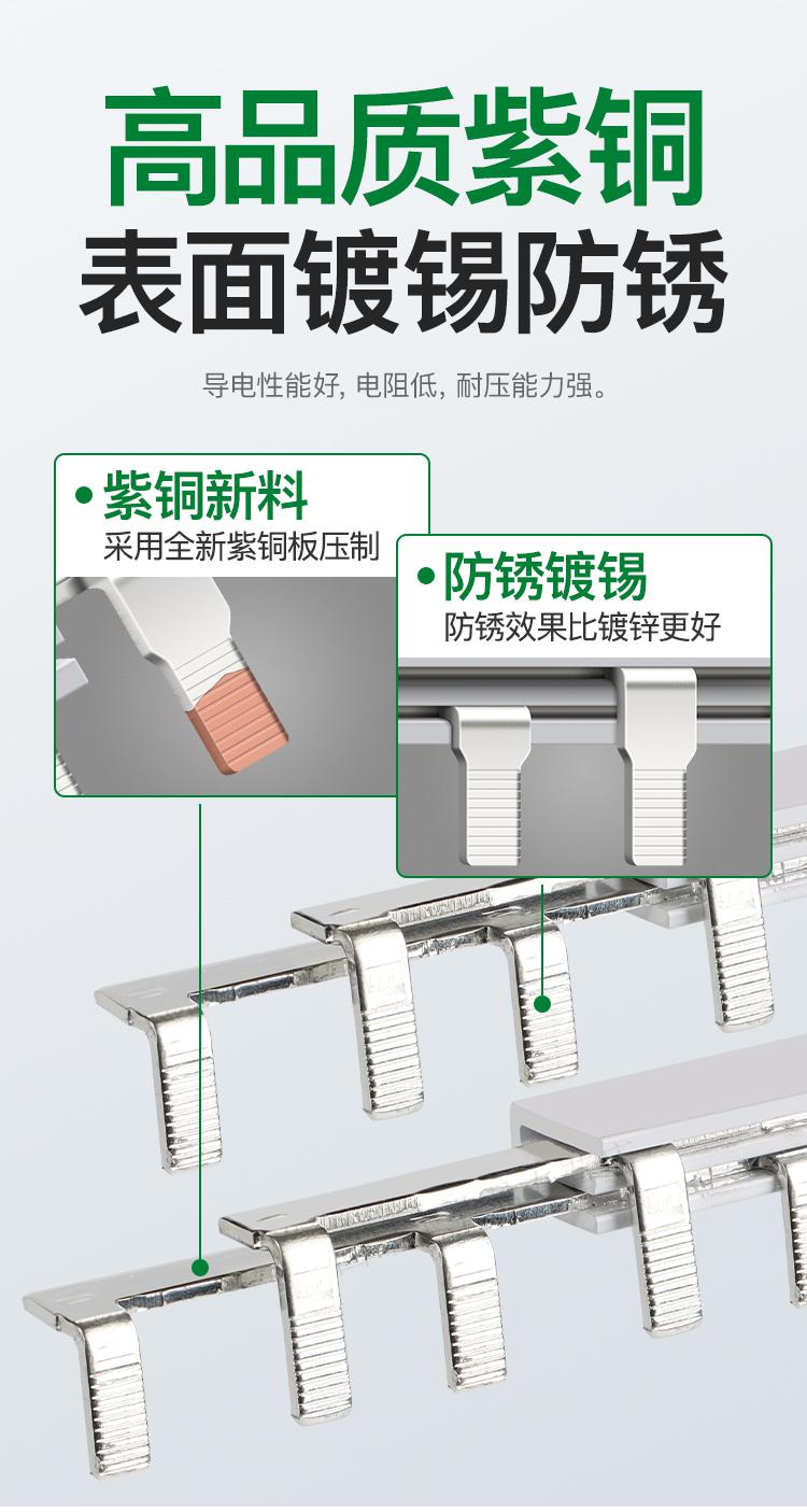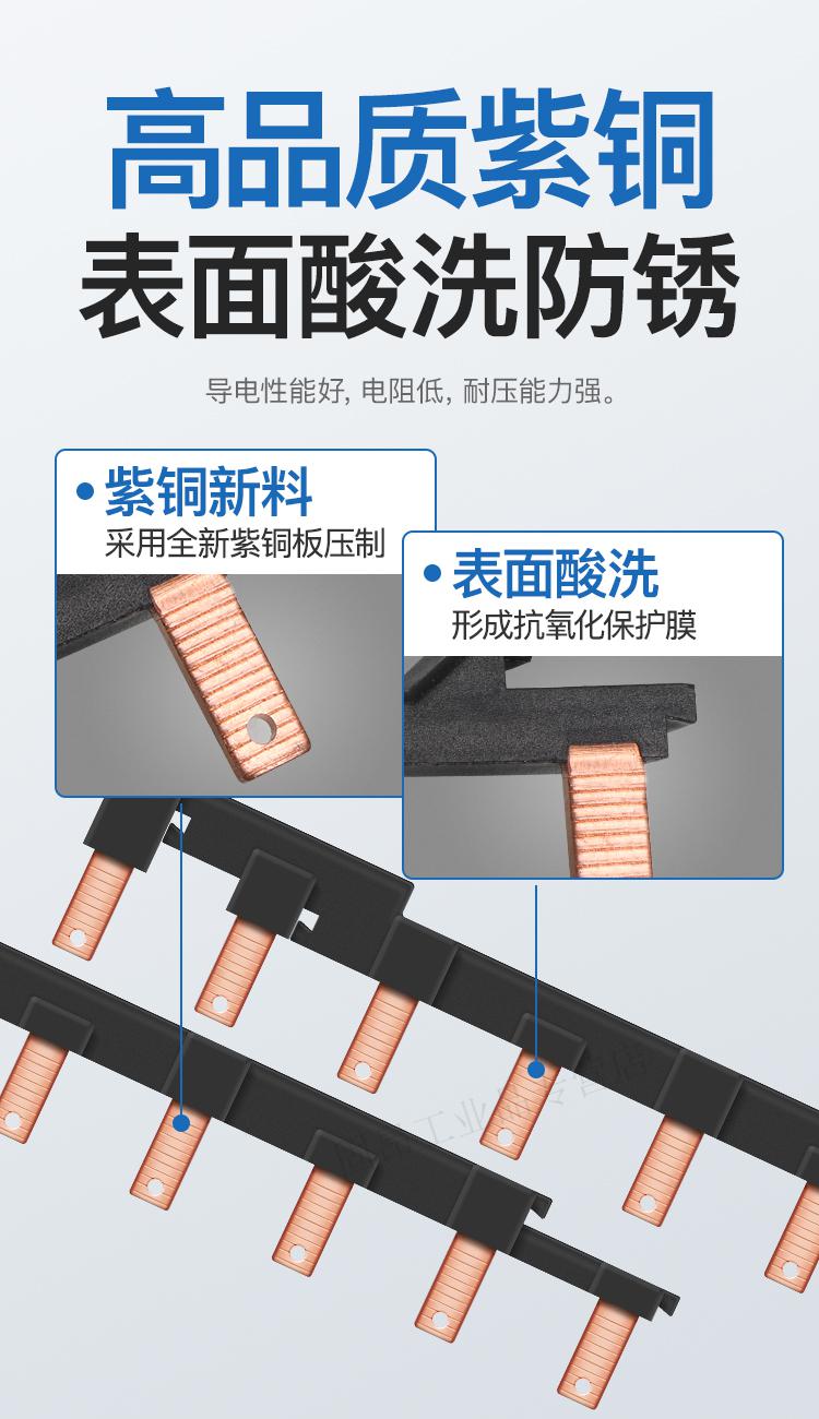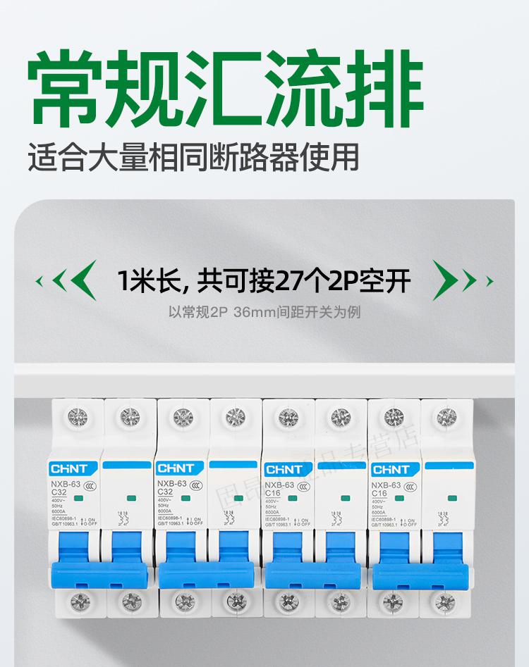 Electrical busbar 2P63A air switch connection row circuit breaker wiring copper row jumper double in and double out national standard copper 2P 32A (1 meter with 27 switches)