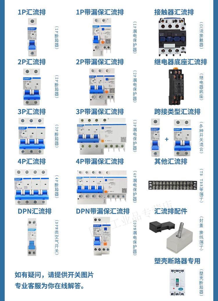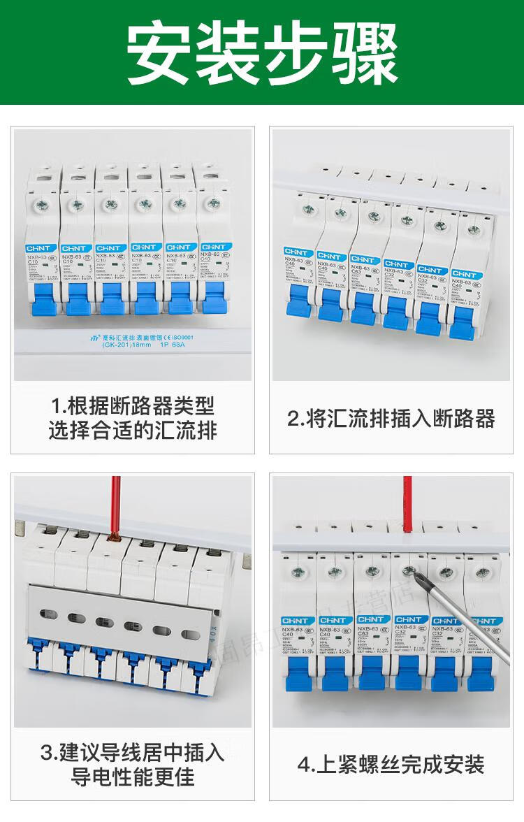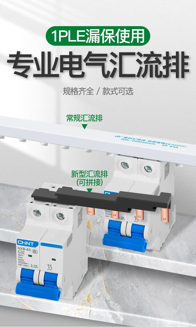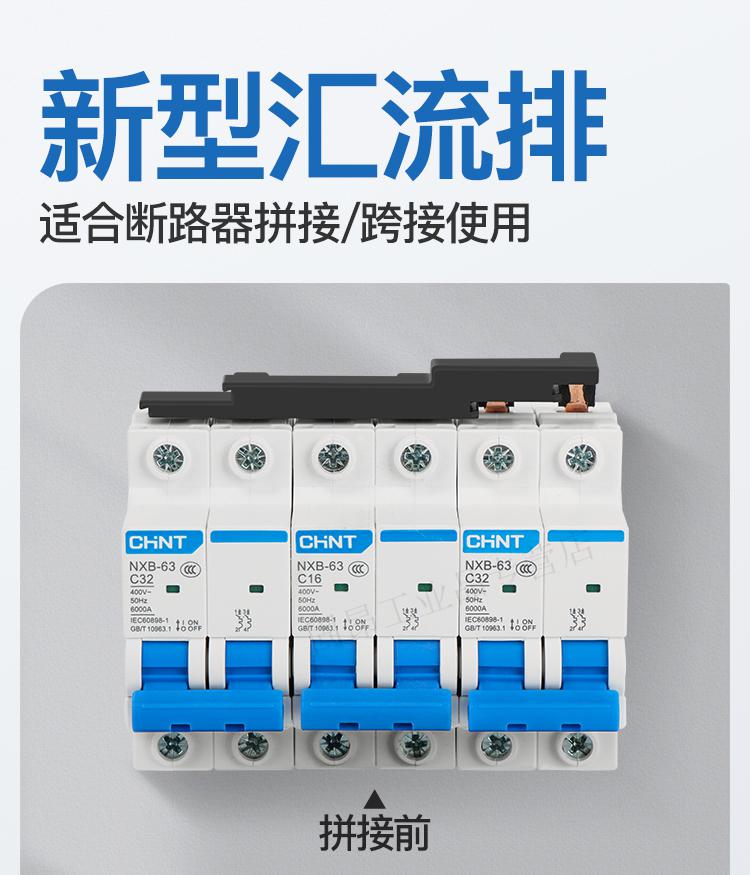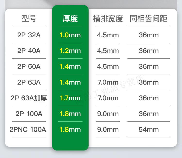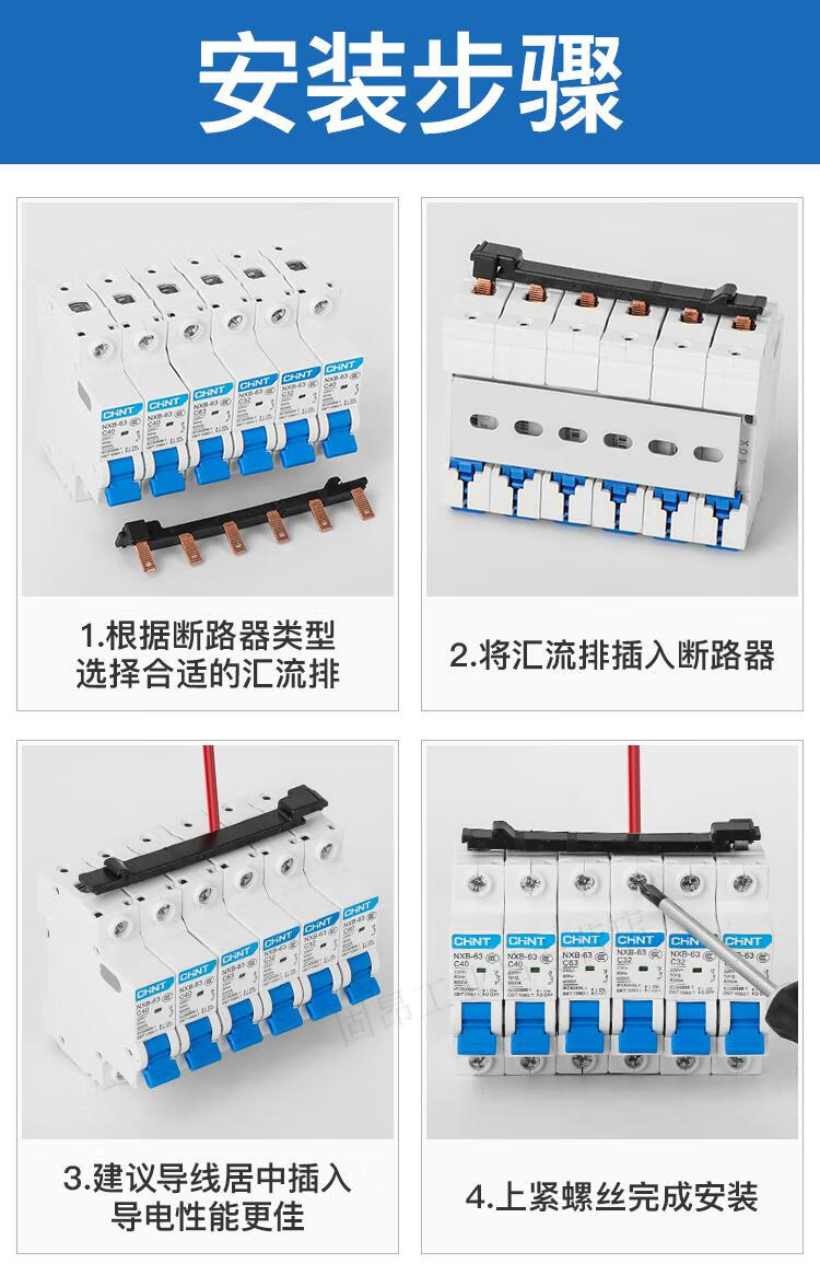 Electrical busbar 2P63A air switch connection row circuit breaker wiring copper row jumper double in and double out national standard copper 2P 32A (1 meter with 27 switches)