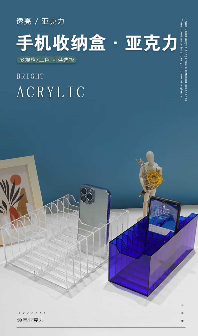 Transparent acrylic mobile phone storage box desktop placement rack card office meeting mobile phone storage box 5-grid transparent storage box