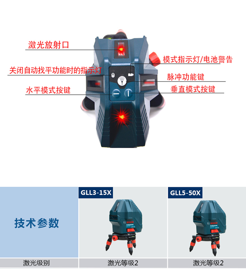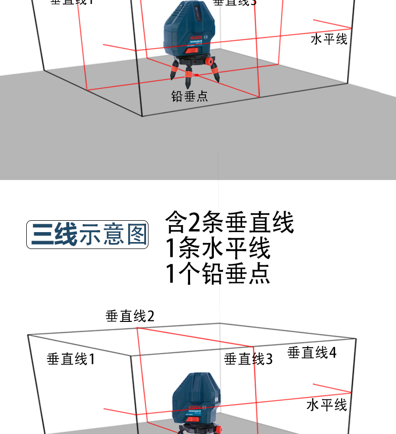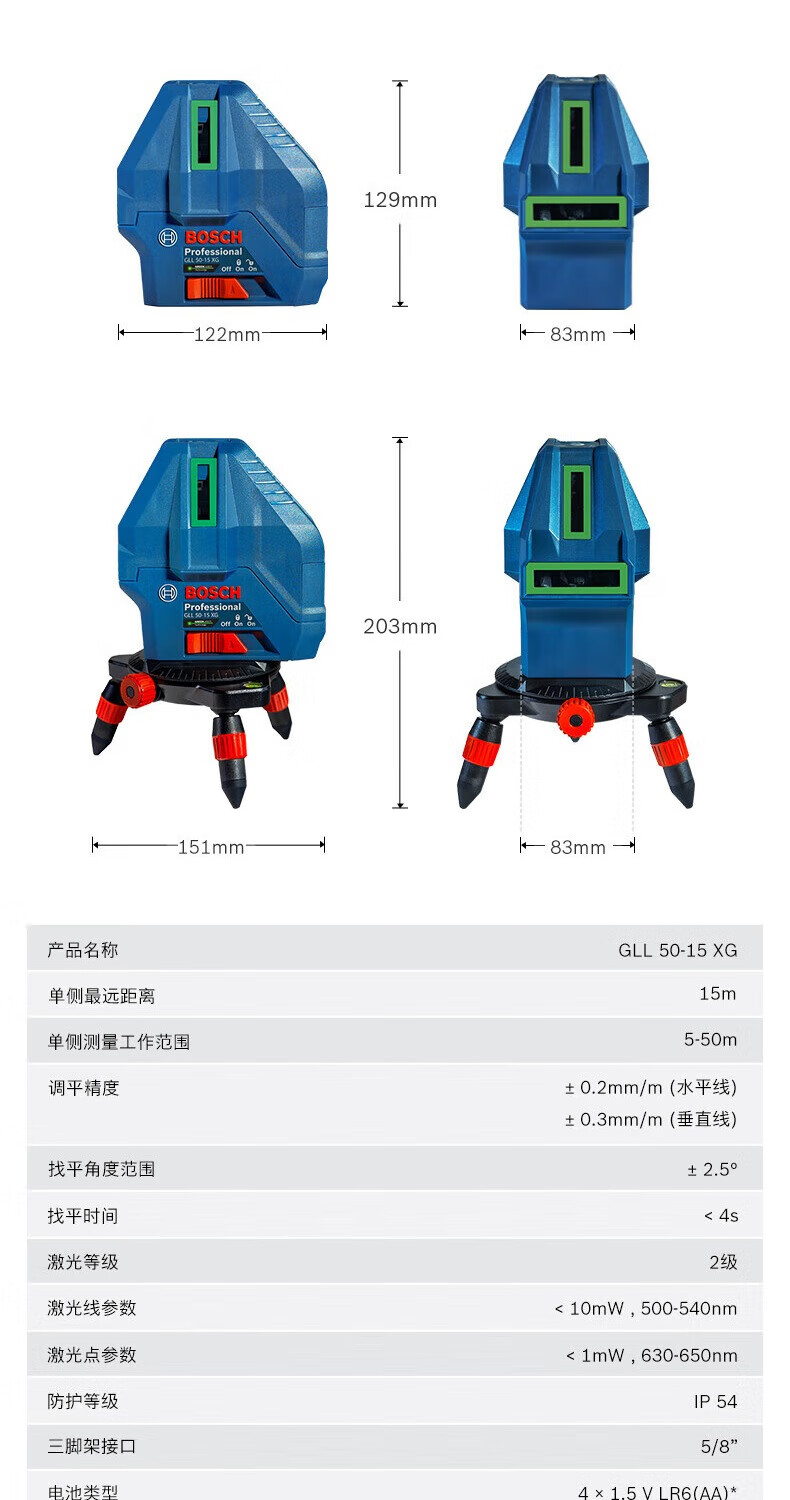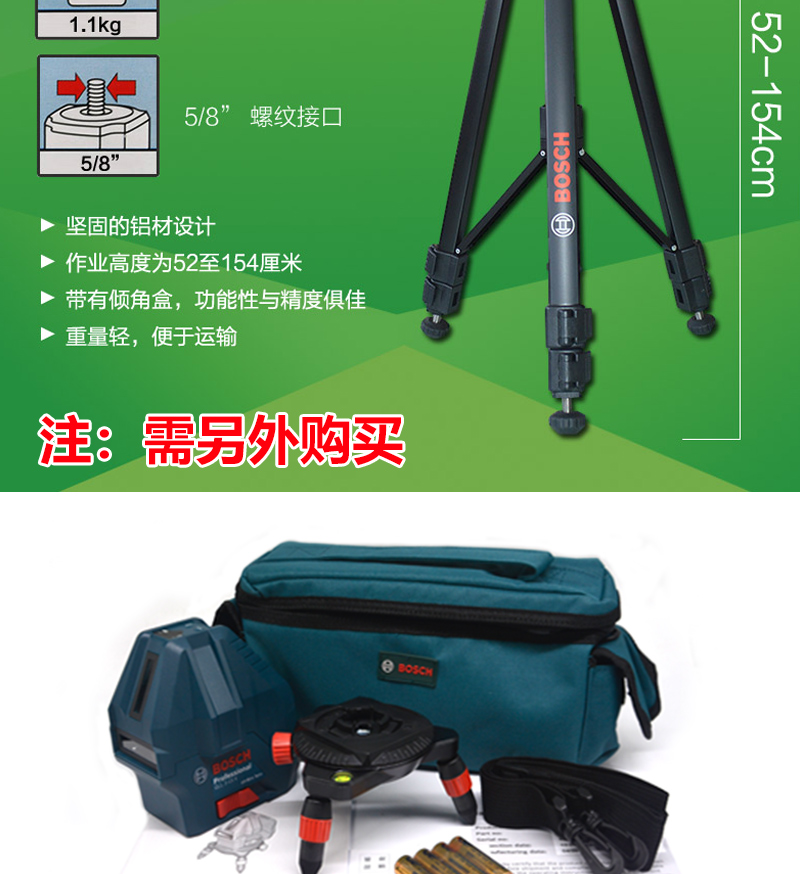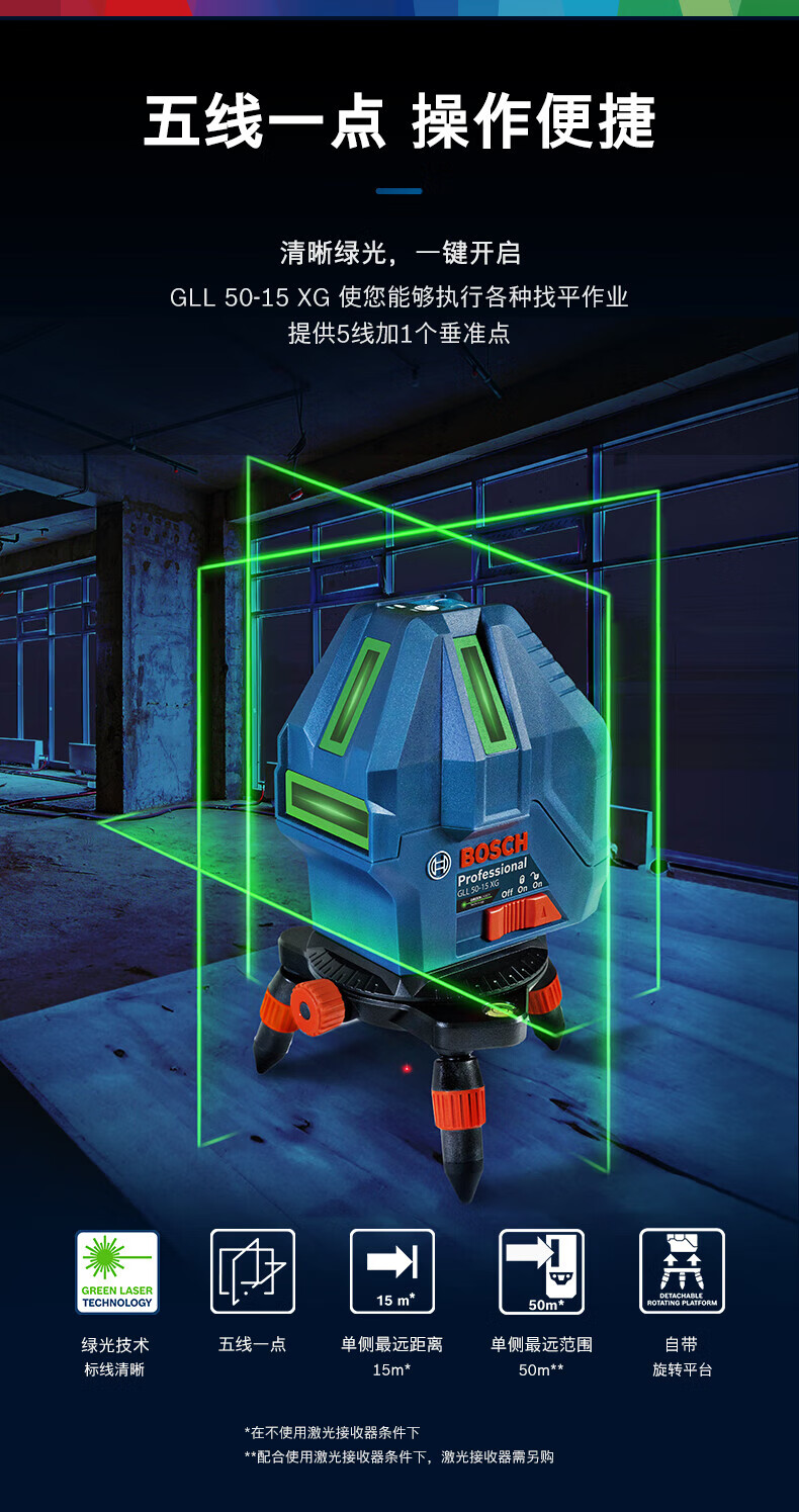 Bosch (BOSCH) infrared level laser marking instrument red light marking line 5-line GLL5-50X green light GLL50-15XG outdoor 5-line green light GLL50-15XG charging set tripod