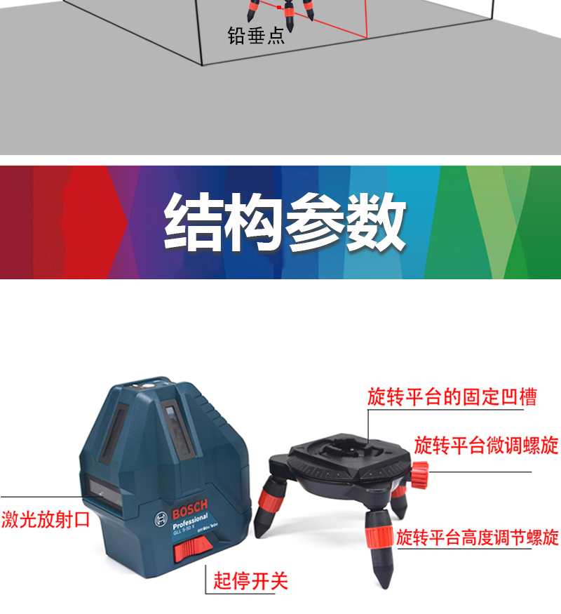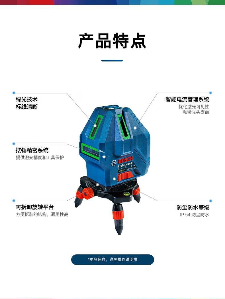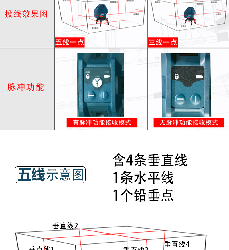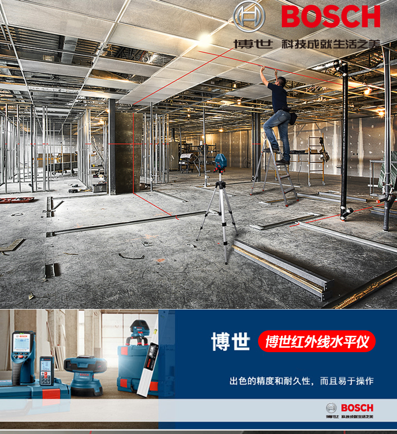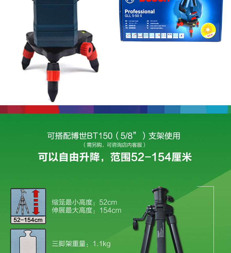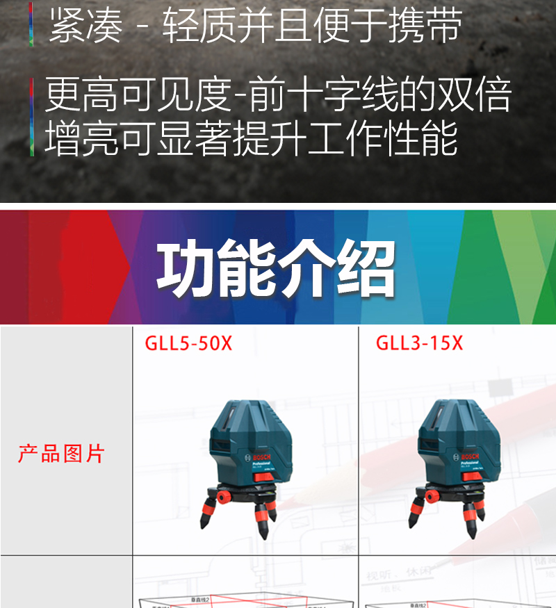 Bosch (BOSCH) infrared level laser marking instrument red light marking line 5-line GLL5-50X green light GLL50-15XG outdoor 5-line green light GLL50-15XG charging set tripod
