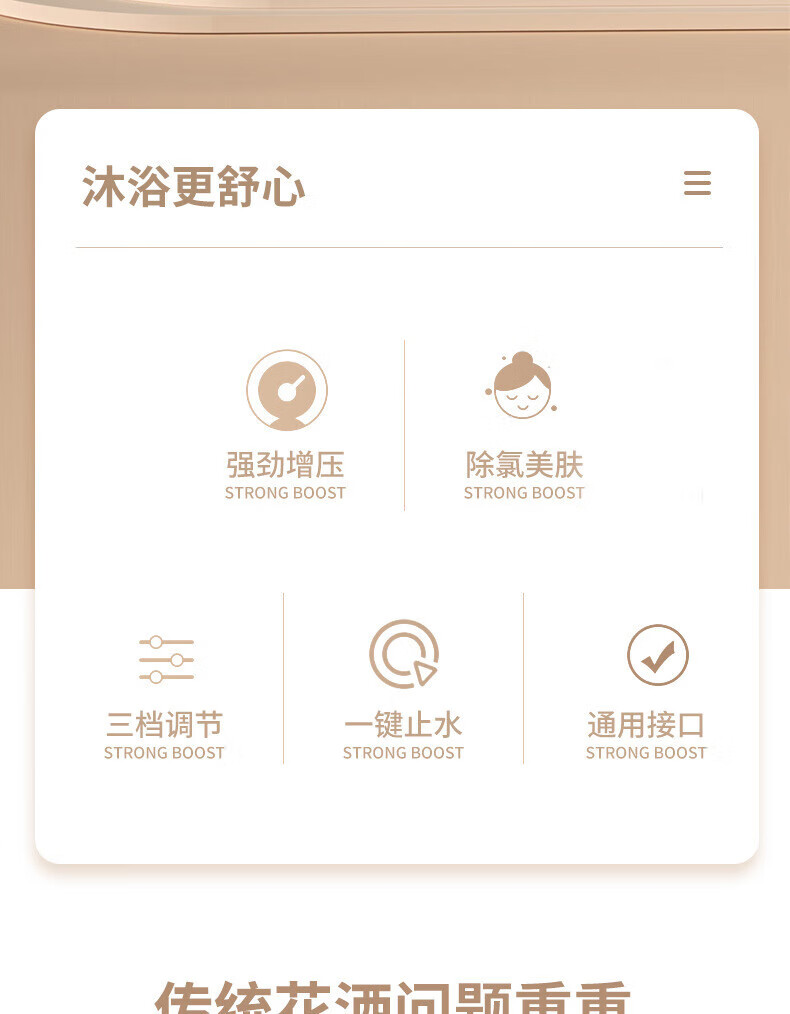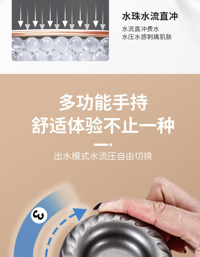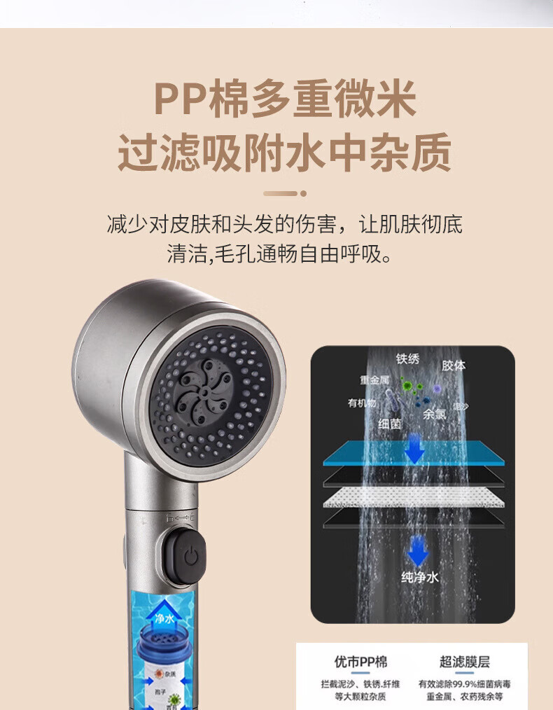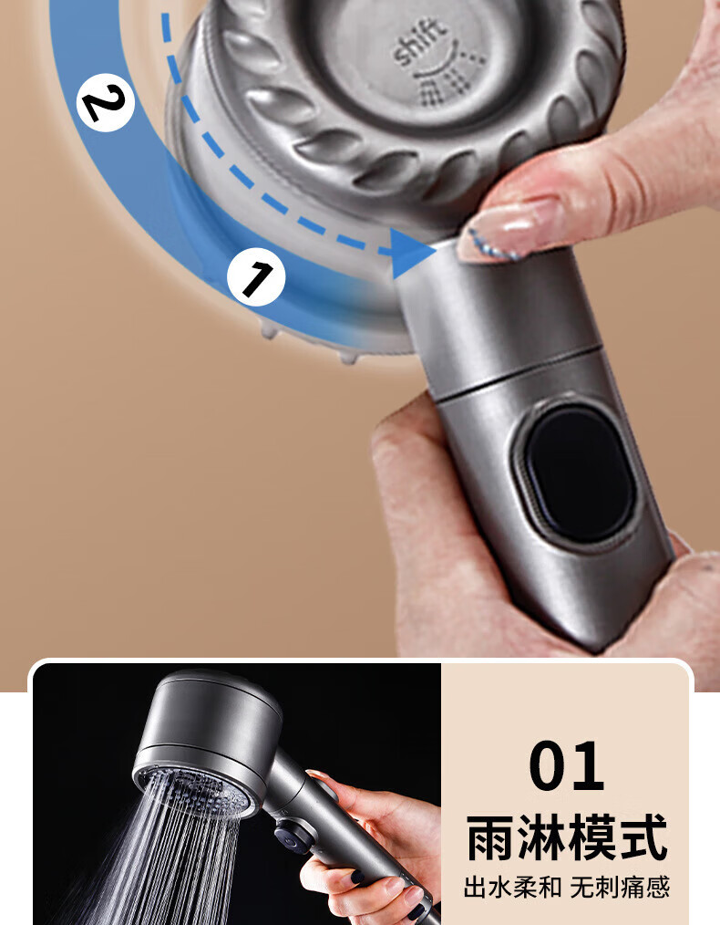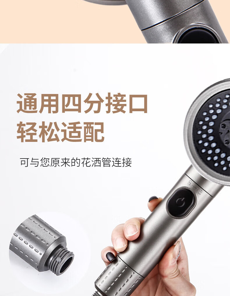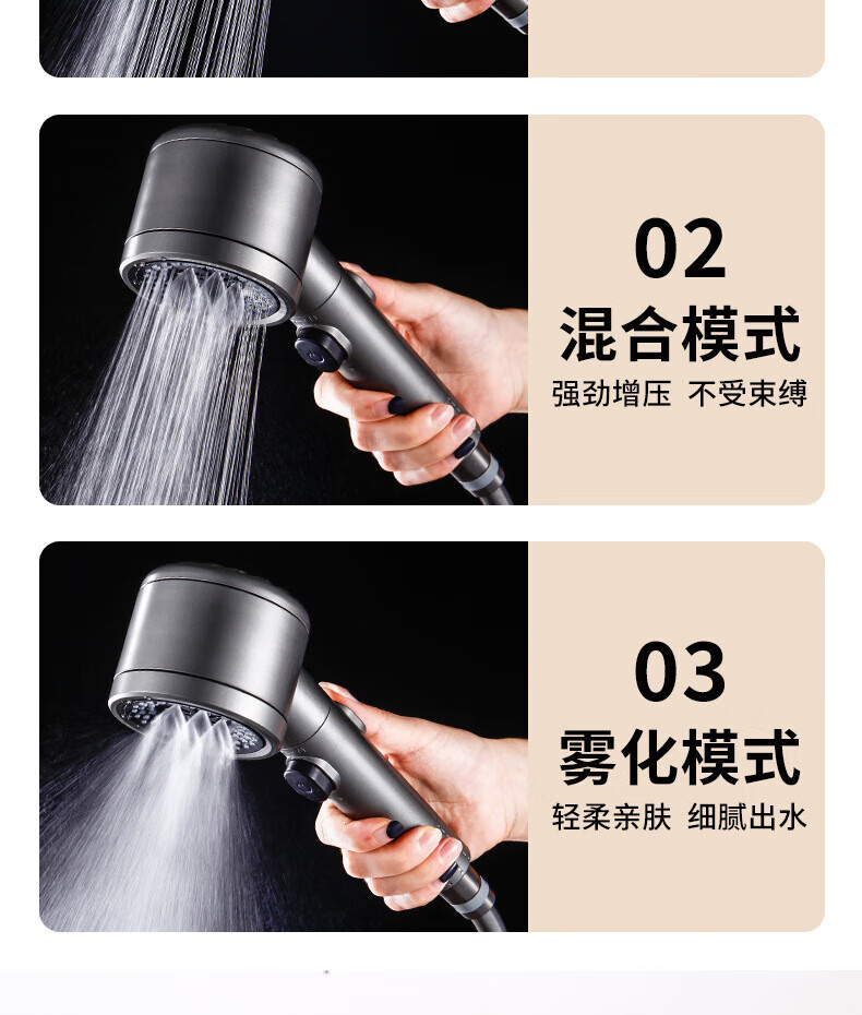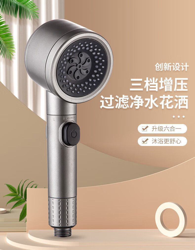 Jiumu Wangdai spray supercharged shower head handheld shower multi-functional super pressure bathroom bath filter shower head upgraded to three levels - light luxury black single handheld