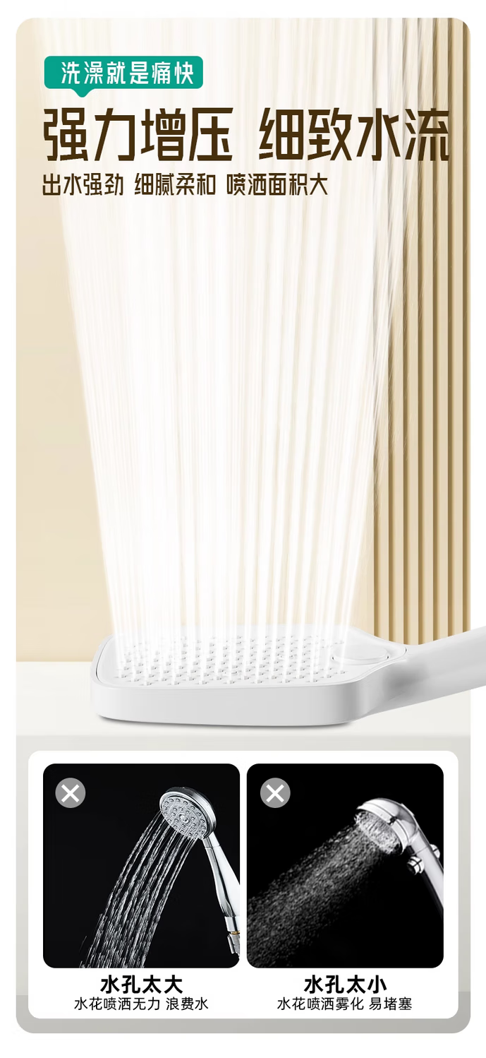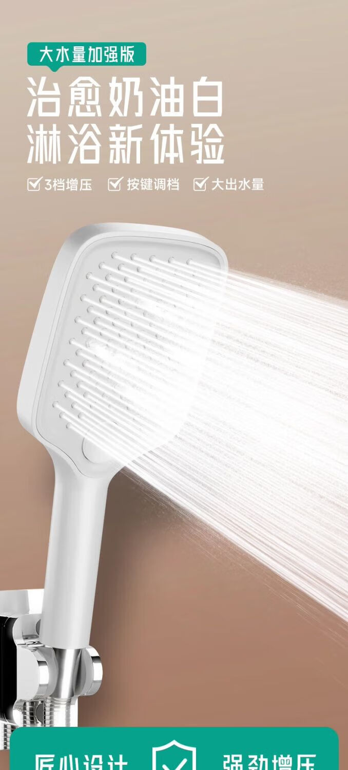 Jomoo's new universal cream style supercharged shower head bath heater shower bath pressurized faucet high shower rain shower set cream white square three-speed supercharged hand-held shower holder