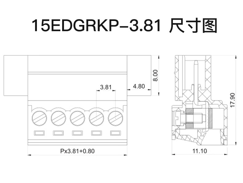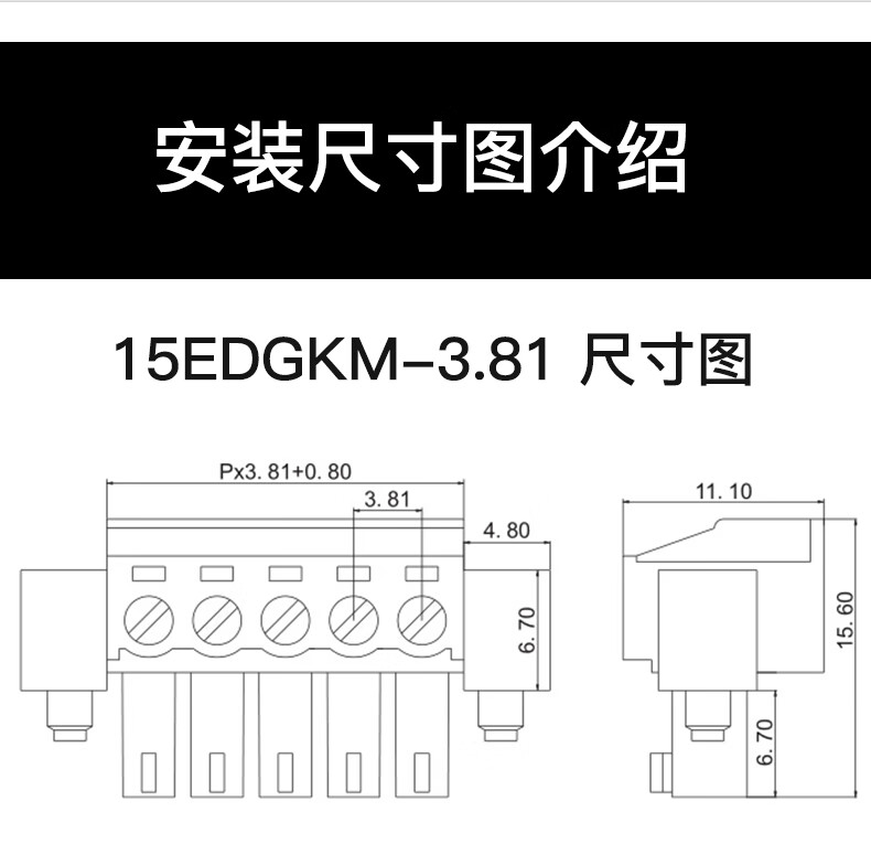 Plug-in terminal block 15EDGRKP-3.81MM pin seat solderless 2-24P air butt connection on both sides, wiring hole seat per person