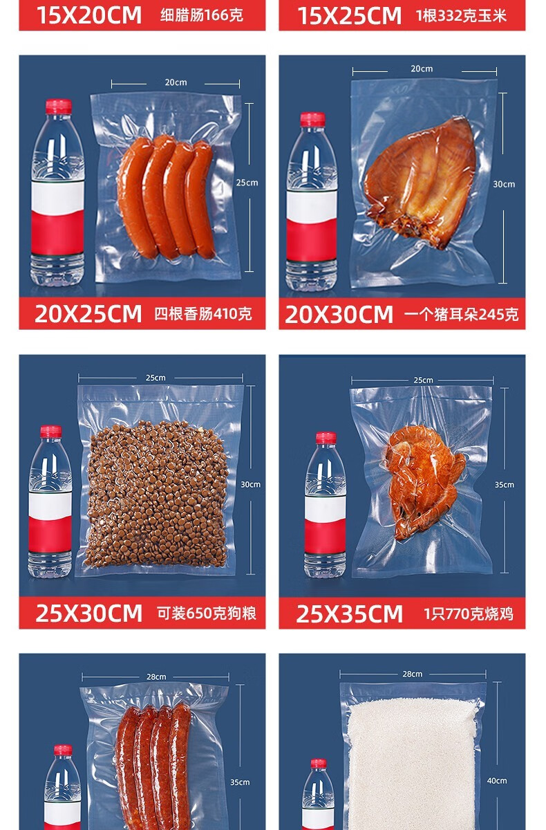 Jingyan 25*30cm vacuum bag vacuum food bag fresh-keeping bag cooked food extraction compression bag disposable plastic transparent bag 25x30cm vacuum bag 100 pieces.