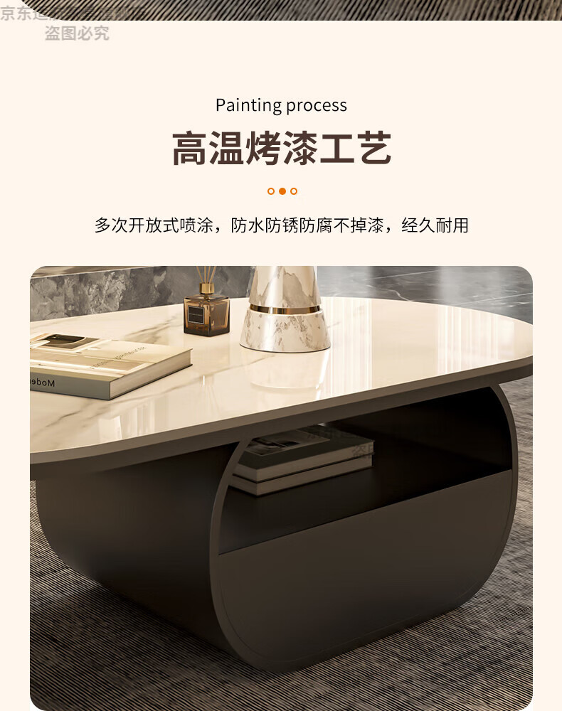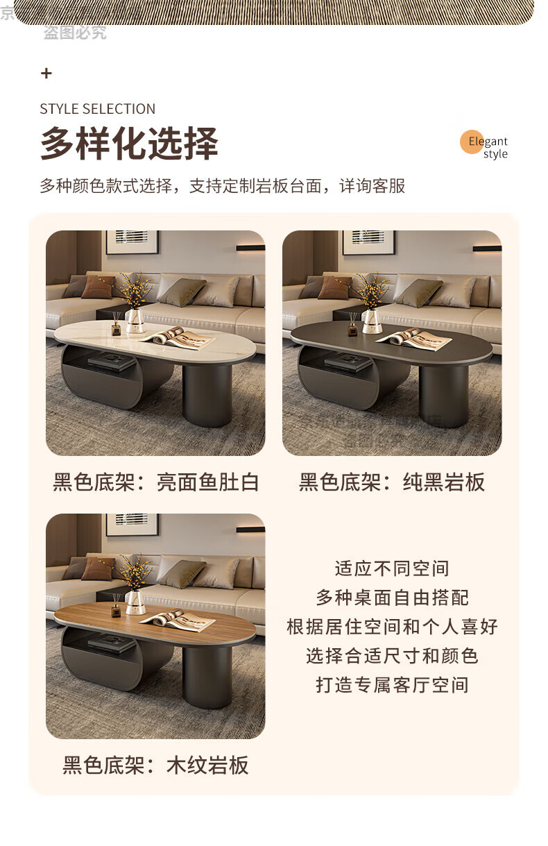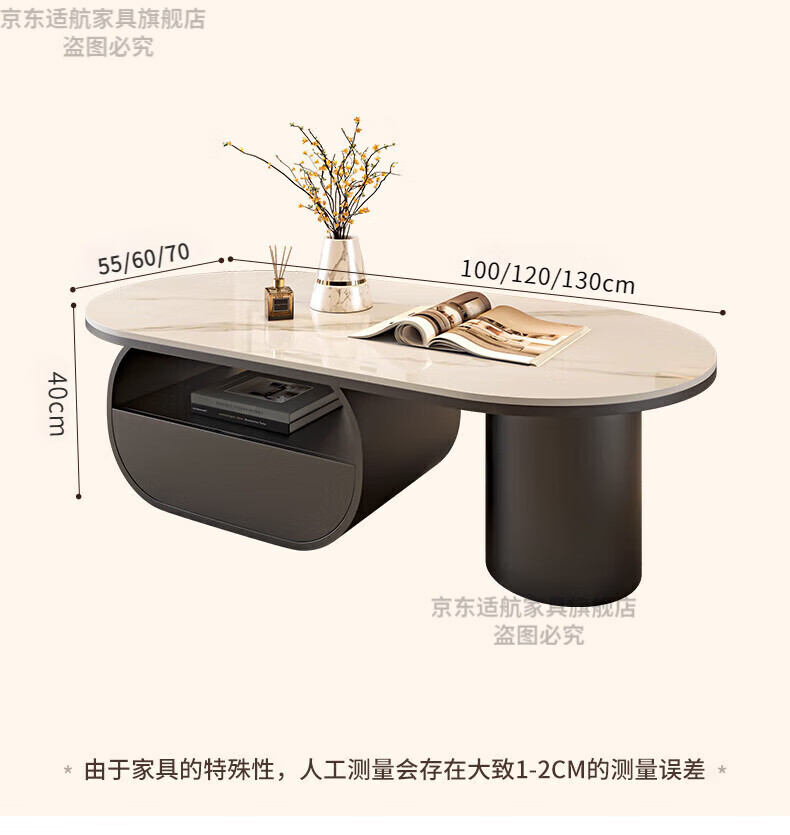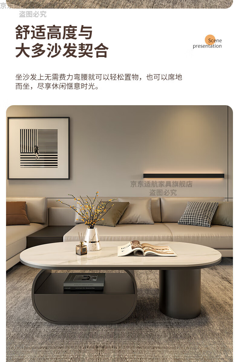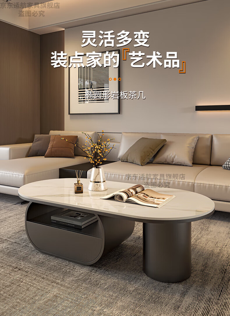 Seaworthy high-end slate coffee table living room small apartment new tea table 2025 modern simple oval living room coffee table light luxury black frame drawer bright white slate 120