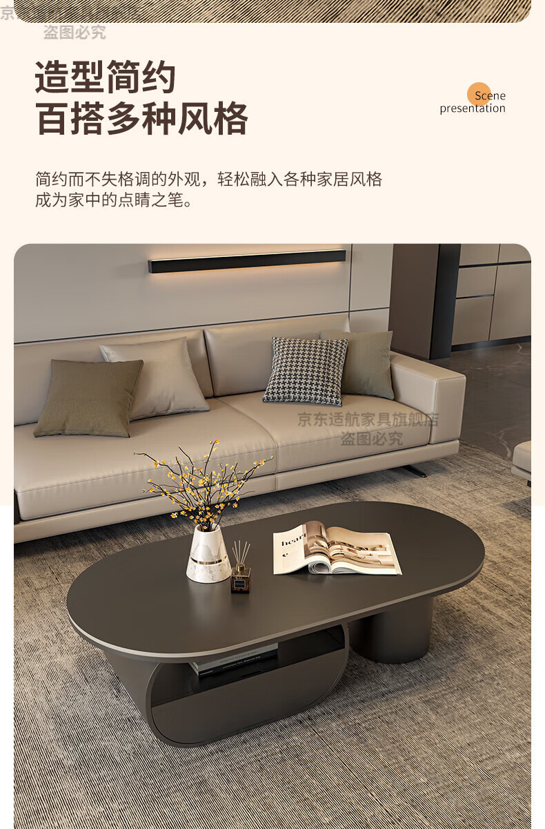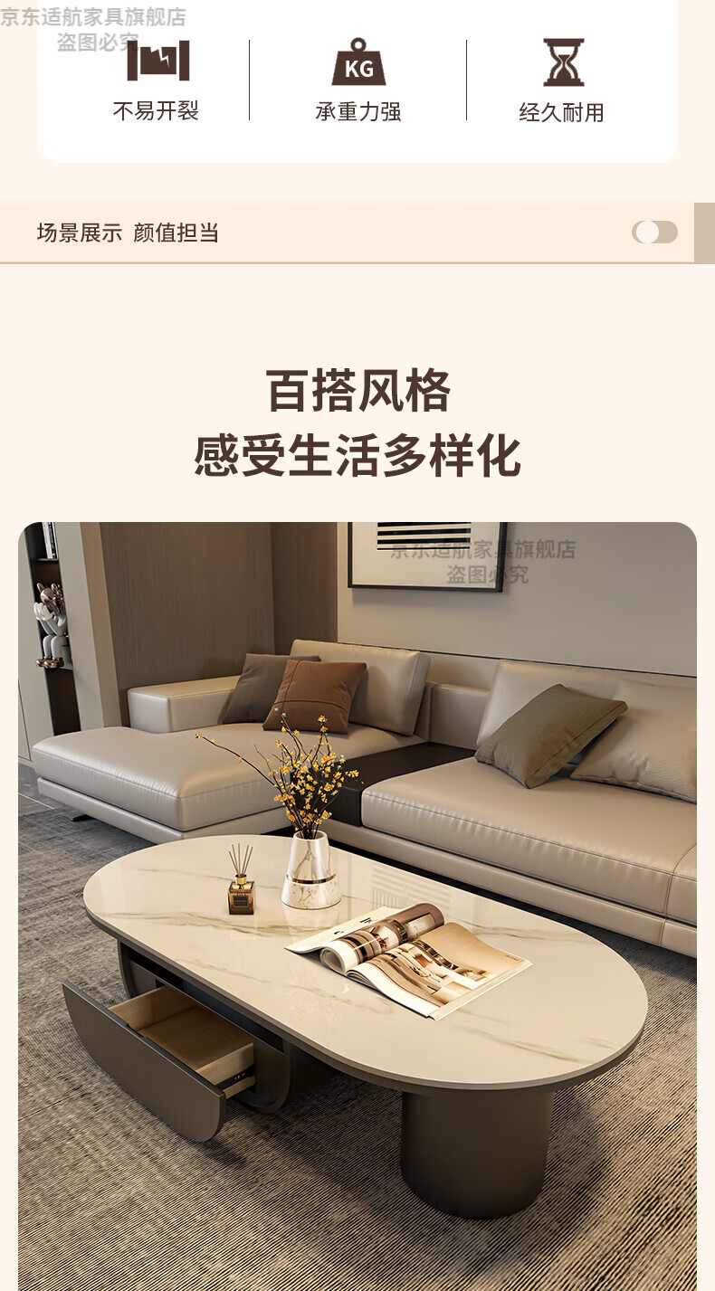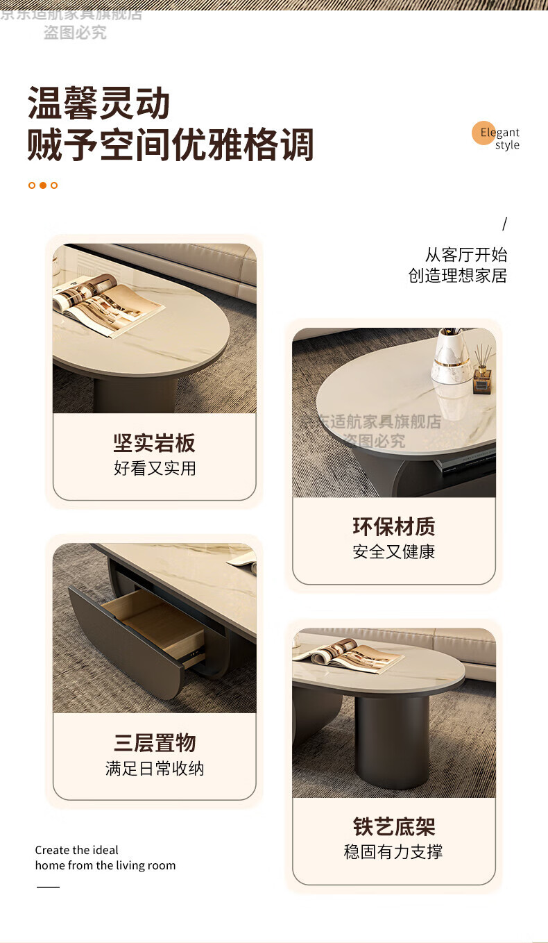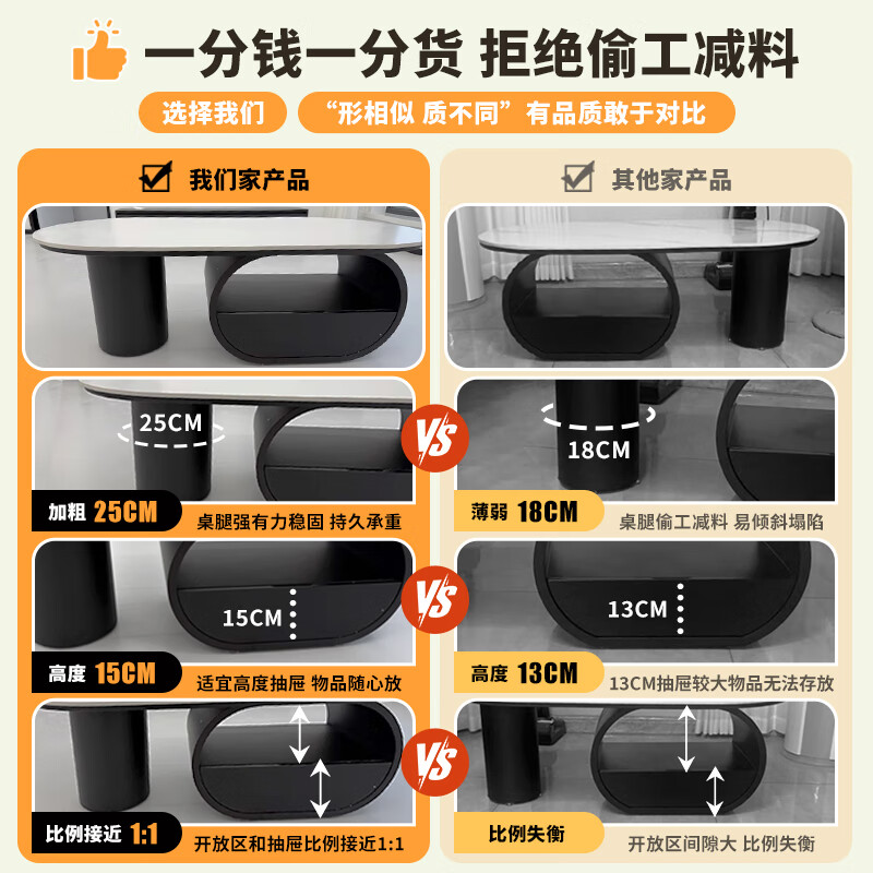 Seaworthy high-end slate coffee table living room small apartment new tea table 2025 modern simple oval living room coffee table light luxury black frame drawer bright white slate 120