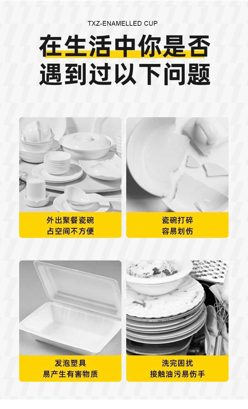 Huilidezhe outdoor disposable rice husk tableware picnic household restaurant tableware portable equipment plate picnic set 50 sets family party package 5-piece set