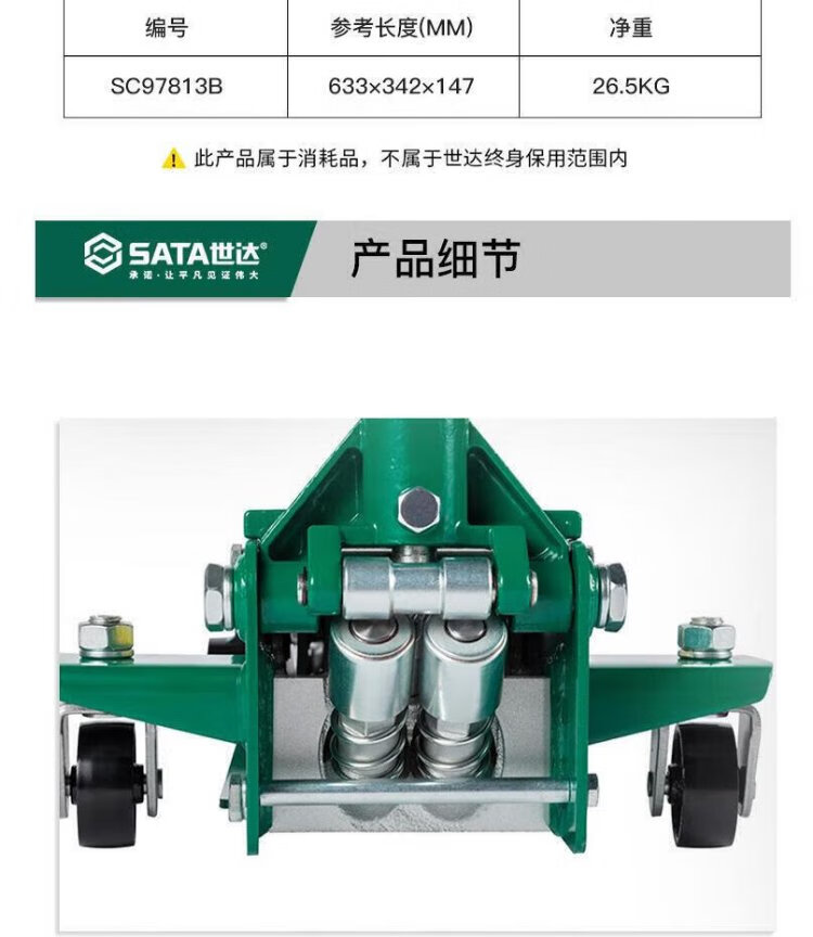 SATA auto repair lifting tools heavy-duty horizontal hydraulic jack low position 97821 heavy-duty horizontal jack 1.5 metric tons