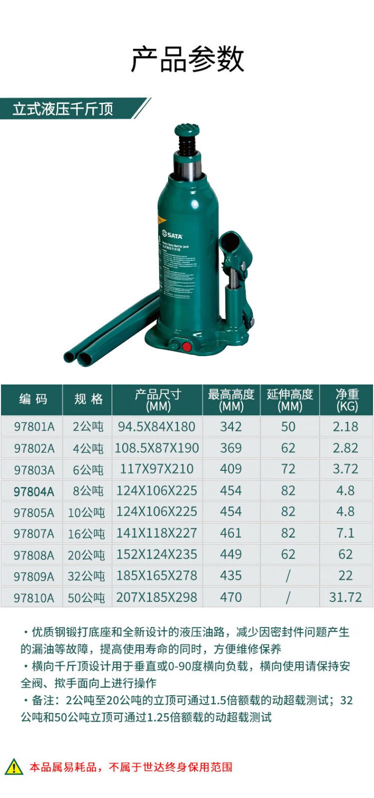 SATA (SATA) 97801A 97810A Hydraulic vertical hand crank car tire changer repairman 97802A (4 tons)