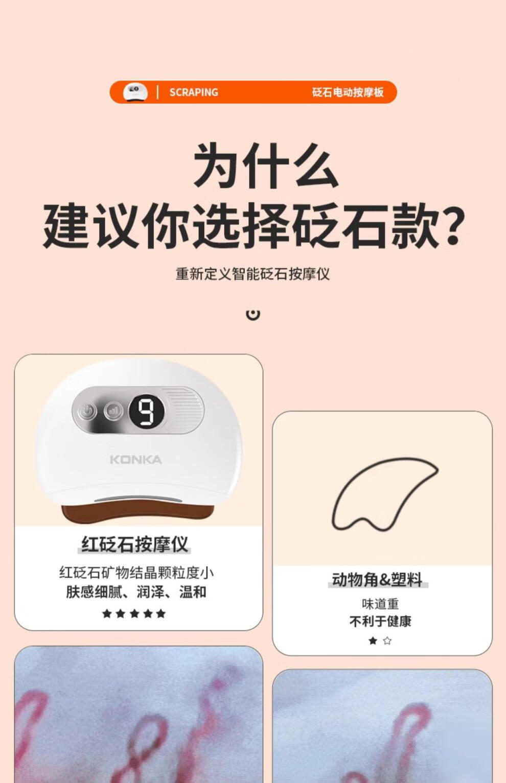 KONKA Electric Gua Sha Board Bianstone Gua Sha Instrument Facial Smart Home Facial Massage Lifting Scraping Board Mother's Day Red Bianstone Gua Sha 9-level Temperature Control