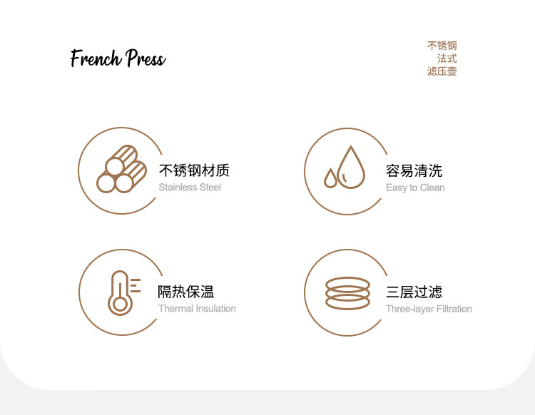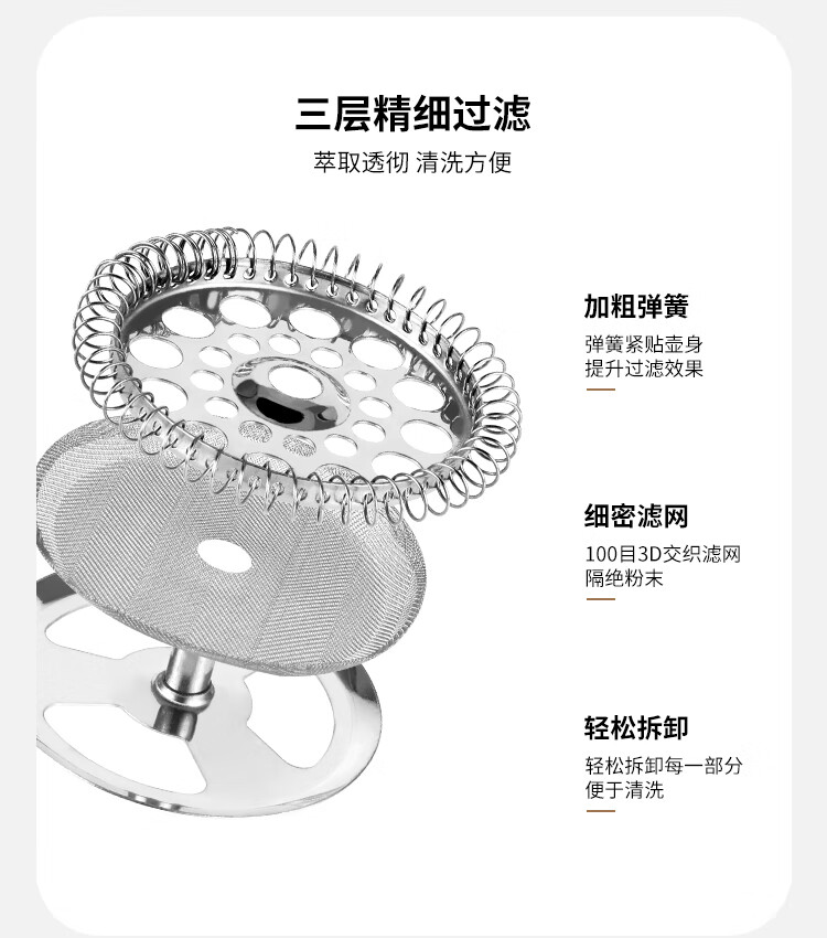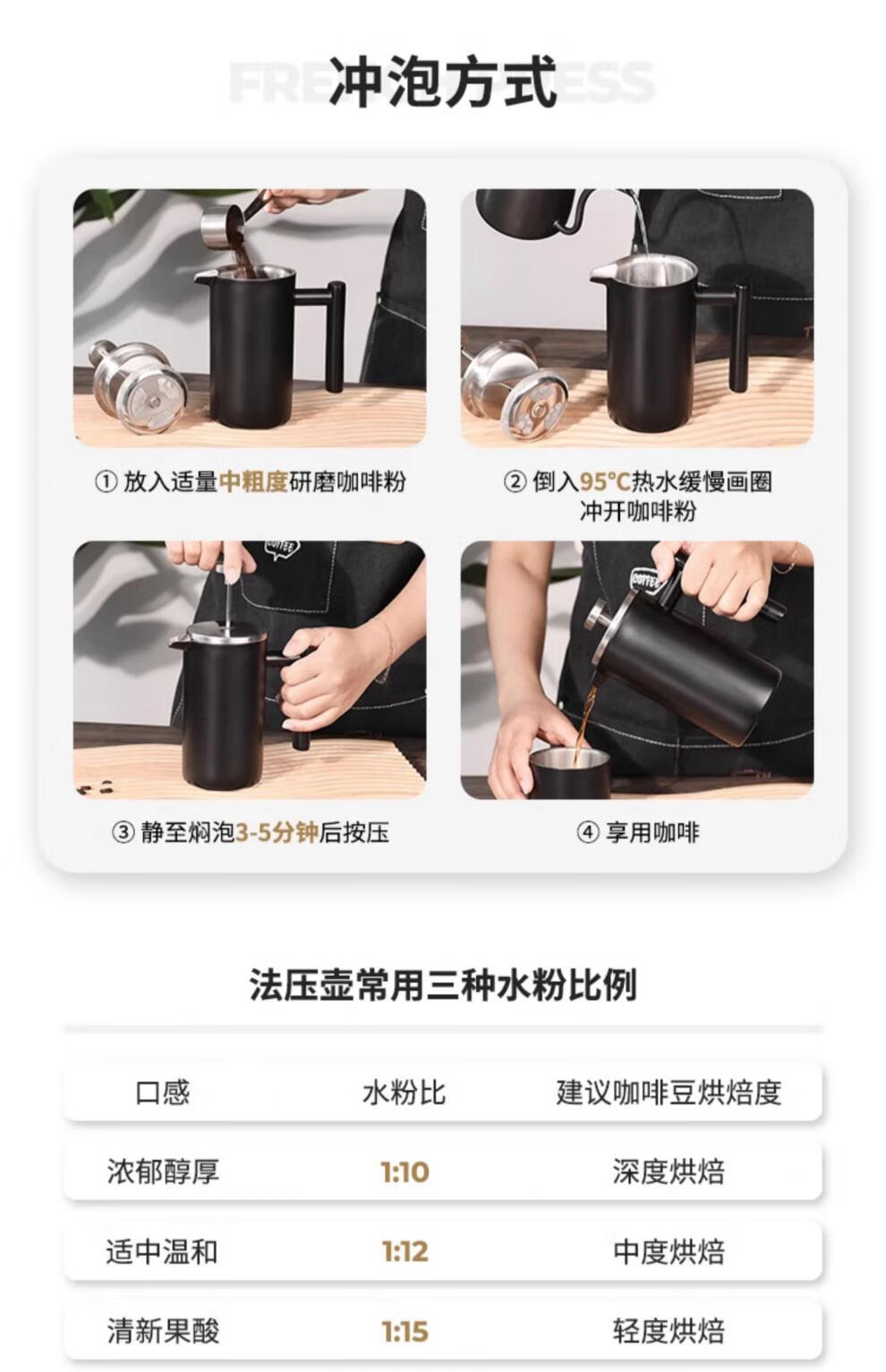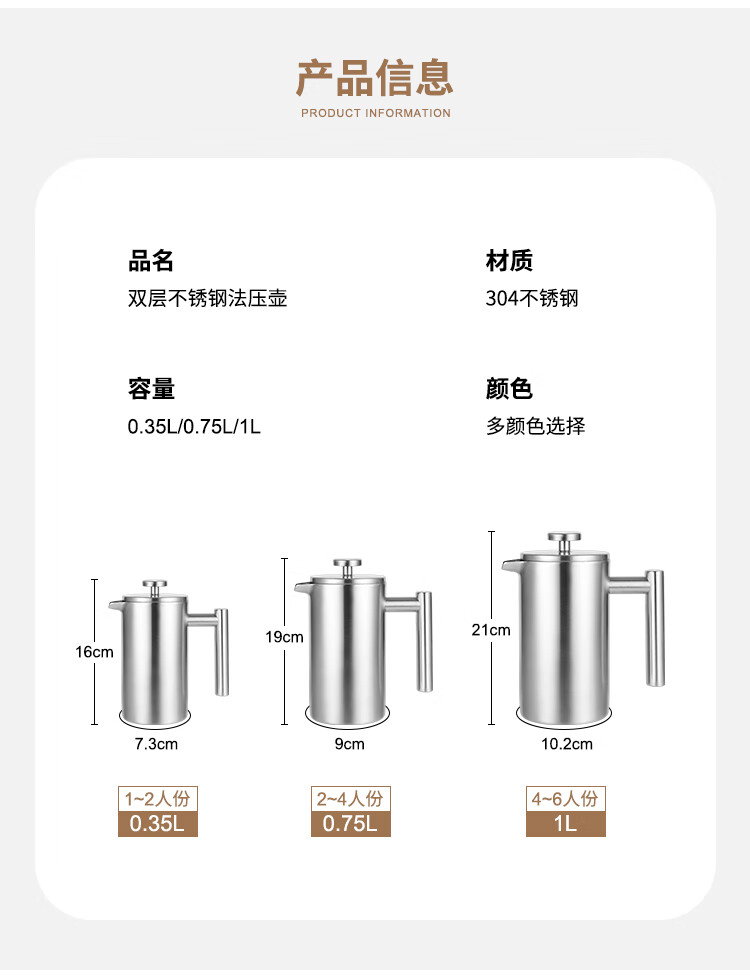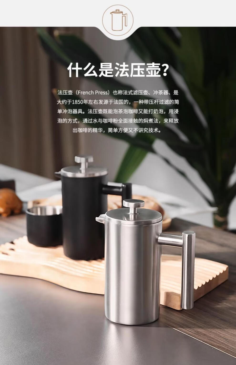 Fat Donglai same quality French press coffee pot 304 stainless steel French hand-brewed coffee utensil set for tea making, sanded default 750ml