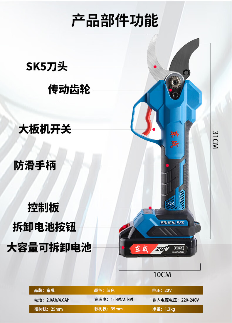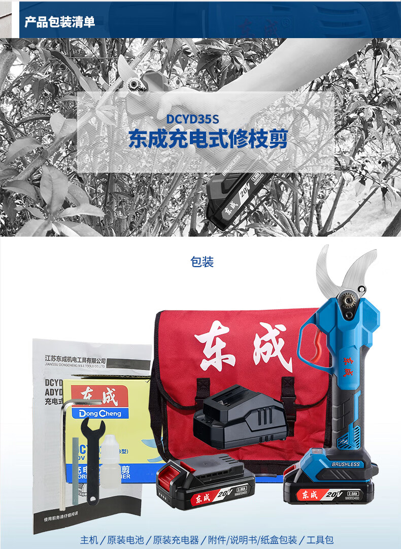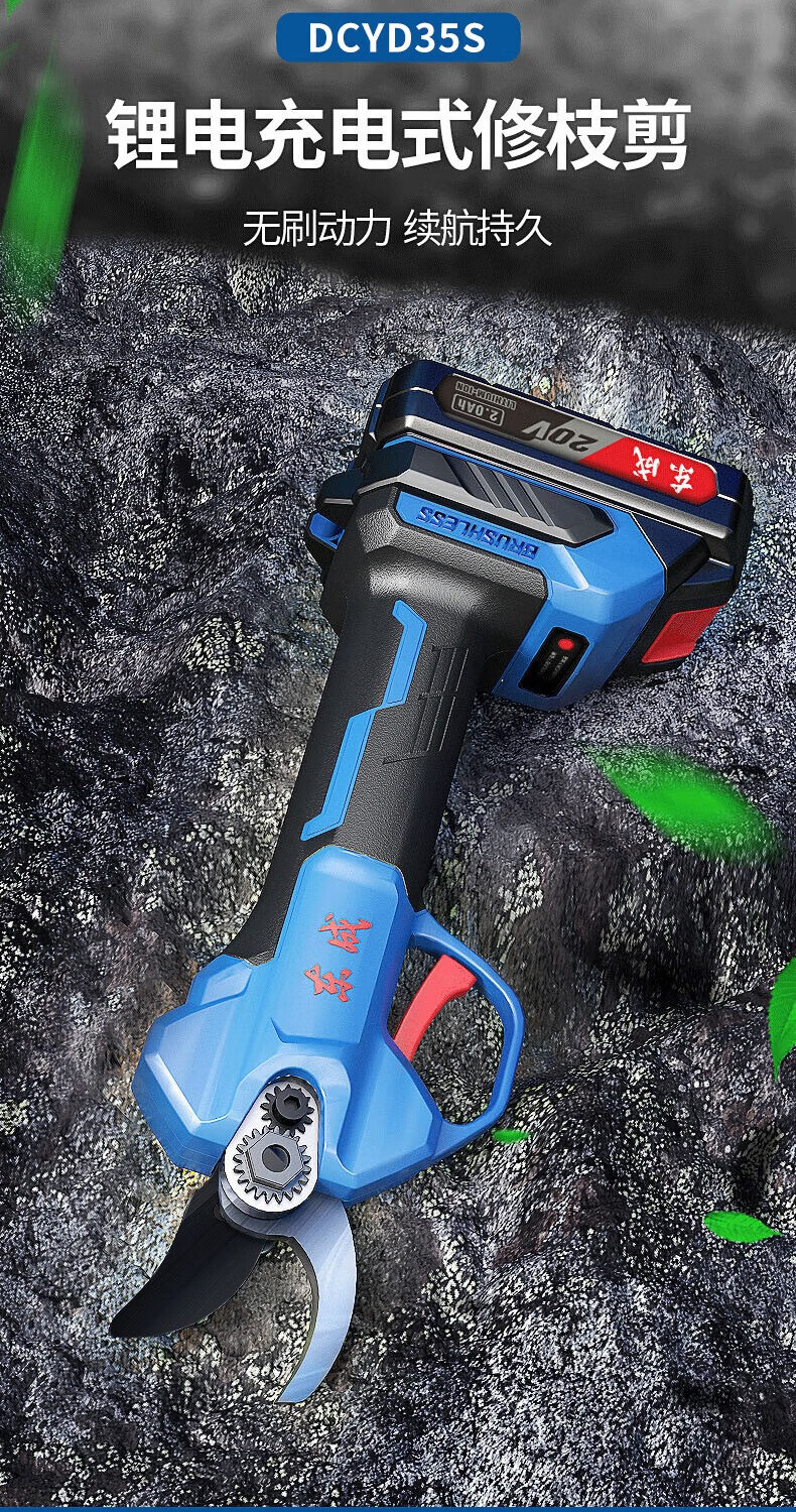 Dongcheng Electric Scissors Fruit Tree Pruning Shears Handheld Rechargeable Garden Scissors 20V Lithium Electric Scissors 3.5CM Thick Branch Shears Electric Scissors DCYD3.5 1 Battery 2.0Ah Free Accessories + Blade