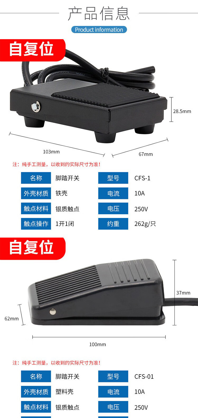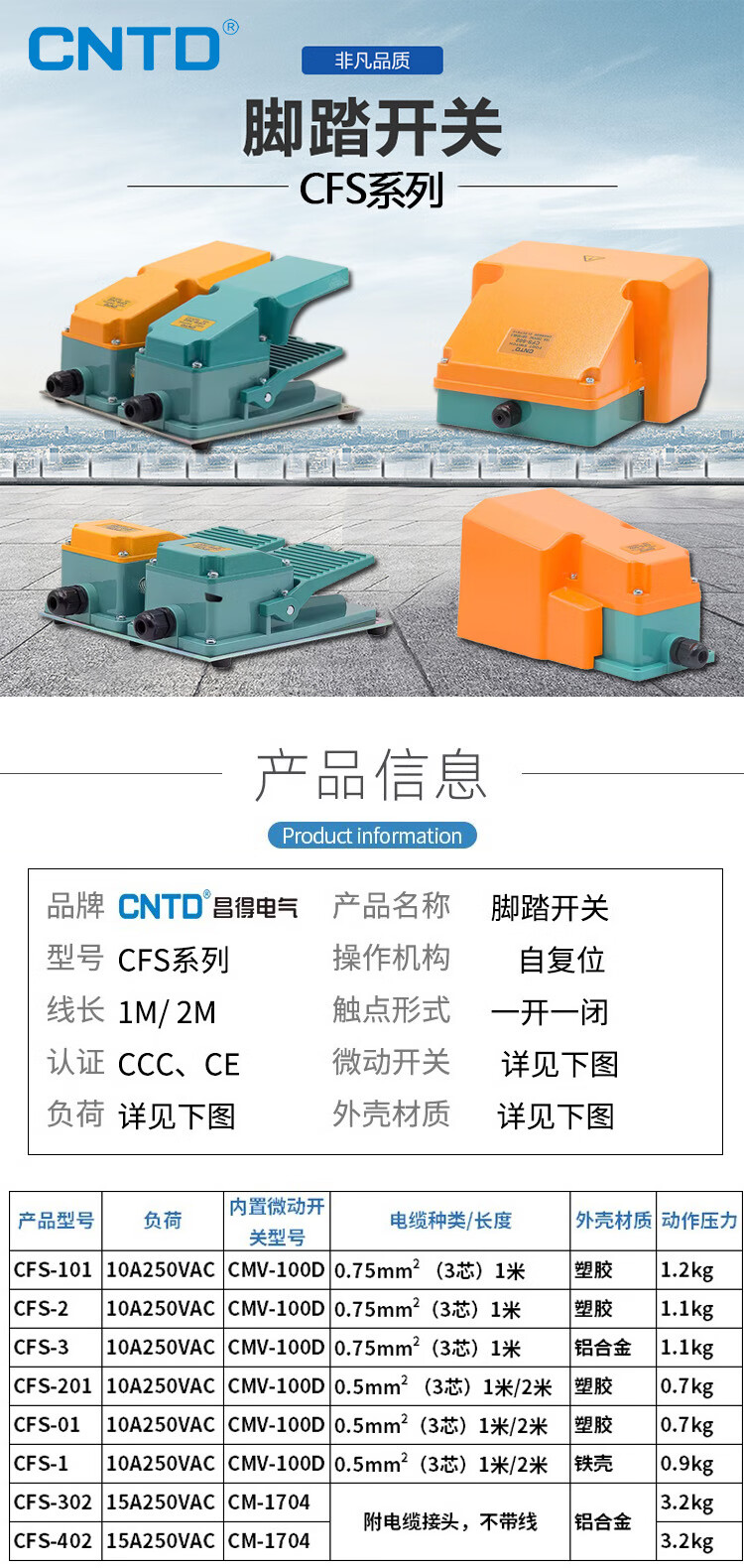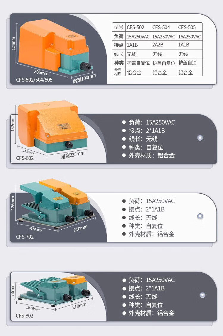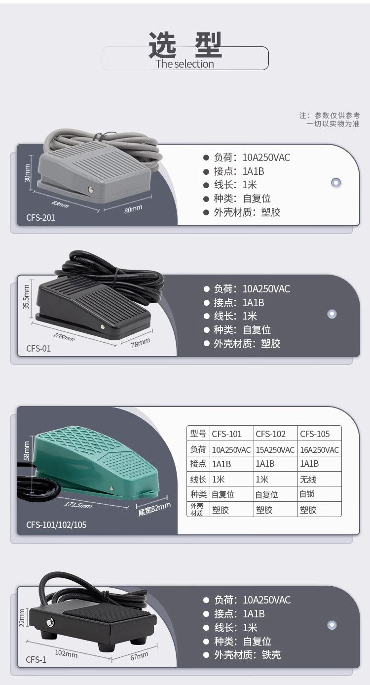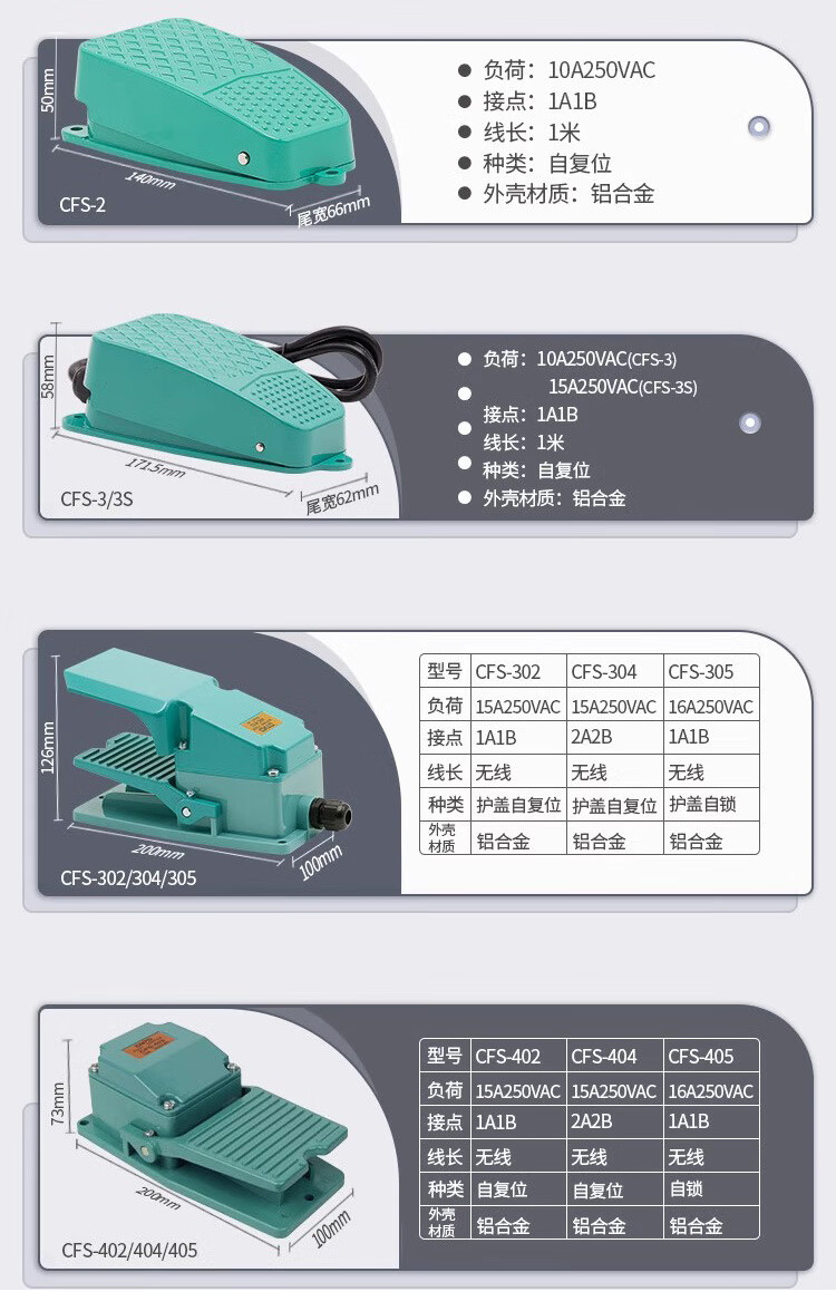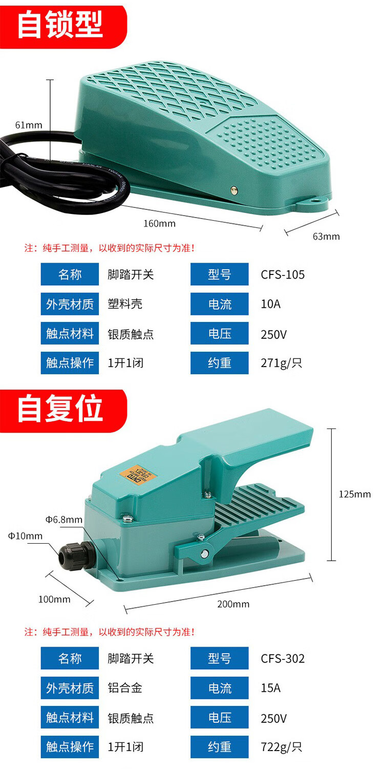 Foot switch TFS CFS-602 802 702 502 102 self-locking foot pedal switch CFS-201 2 meters