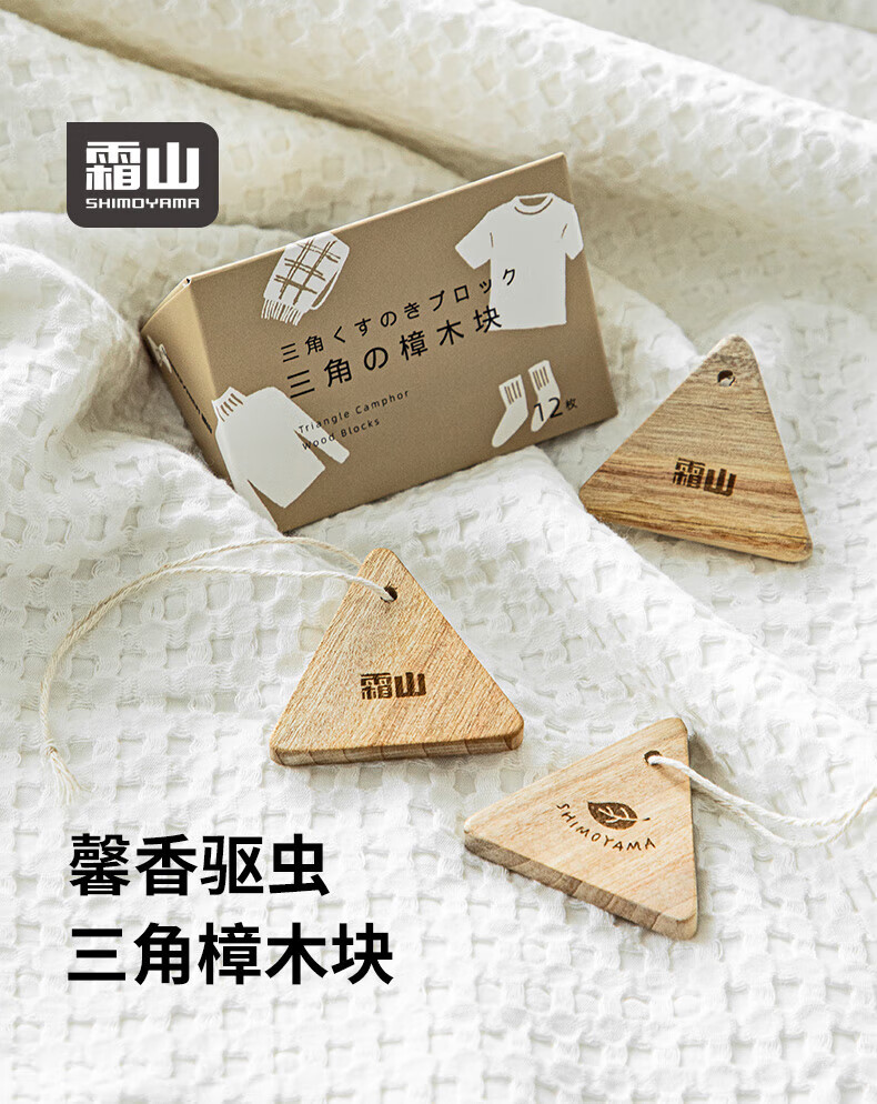 Shuangshan natural camphor wood strips, triangular camphor wood blocks, wardrobe deodorization, insect repellent, clothing insect repellent and cockroach prevention, hanging camphor wood blocks, 12 pieces, triangular camphor wood blocks, insect repellent and moth-proofing