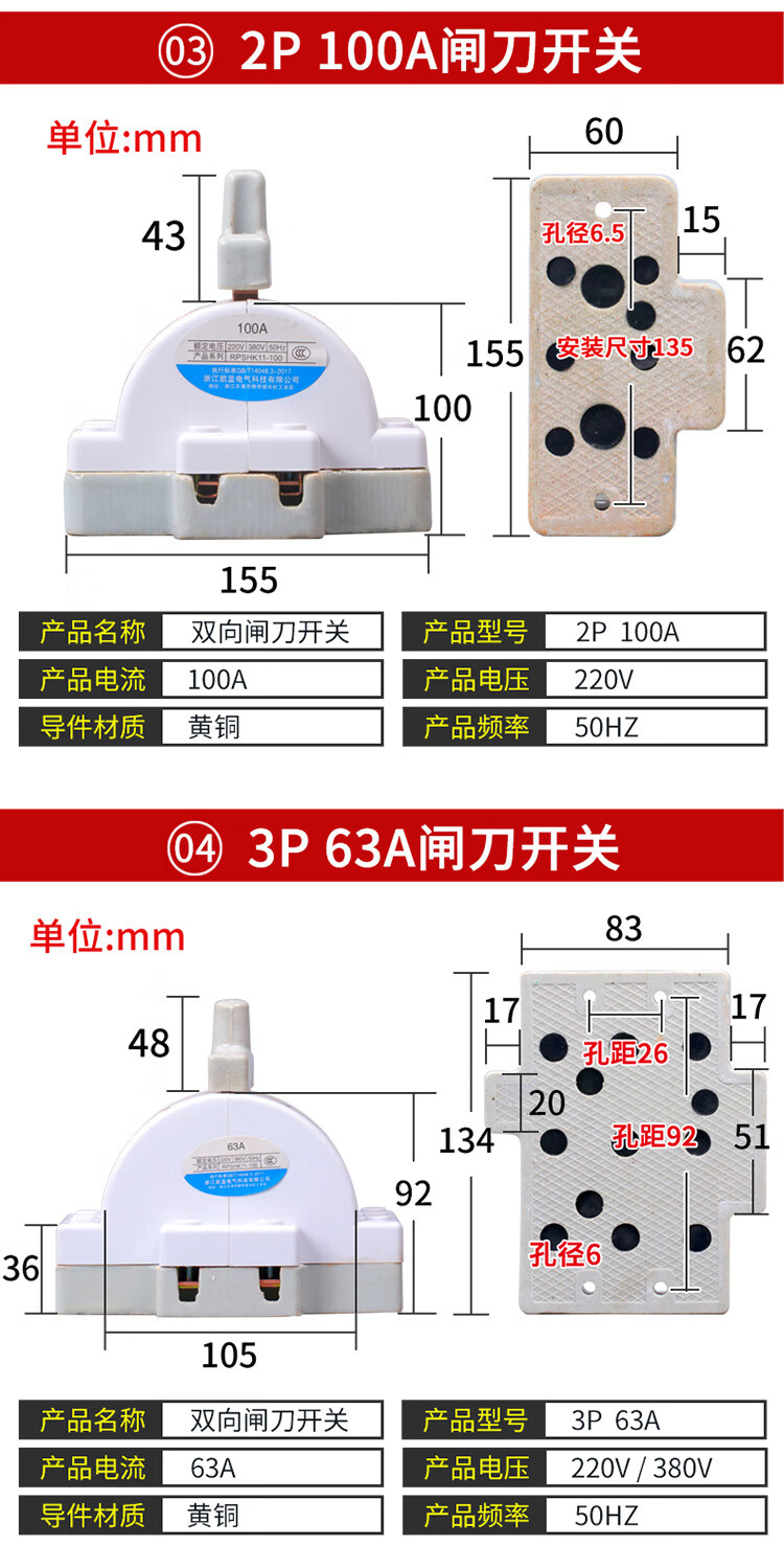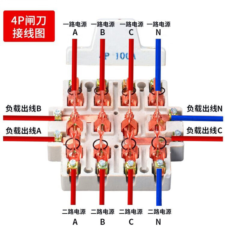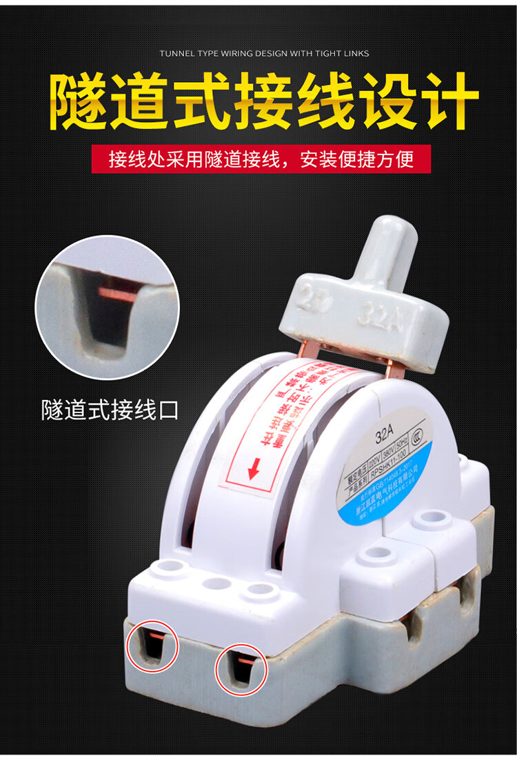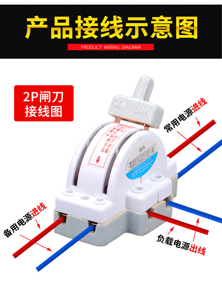 Two-way double-throw knife switch ceramic 32A2P reverse electric knife switch 220 dual power conversion switch 2P 100A ceramic model