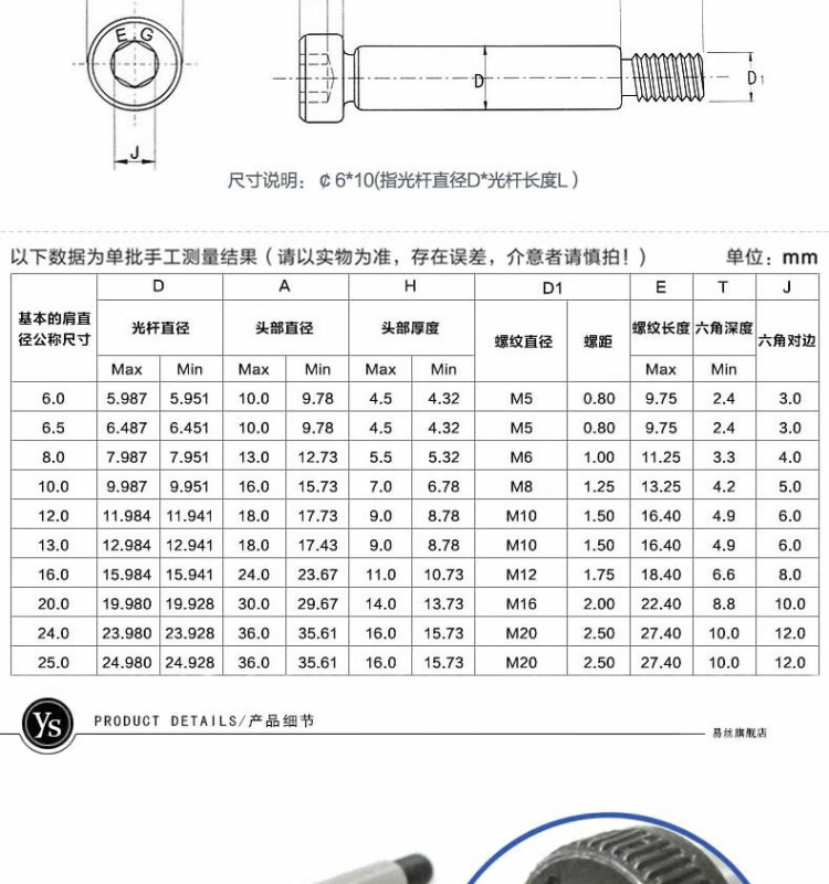 Yisi grade 12.9 high-strength plug screws, hexagonal metric bolts, limit screws, convex shoulder, and nailing, 20*45