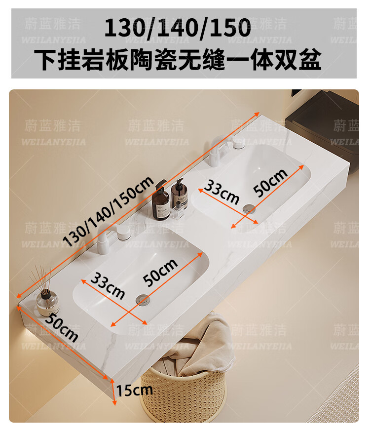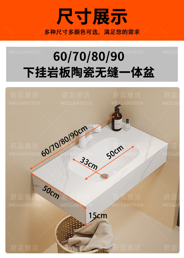 Azure Yajie slate ceramic seamless one-piece basin customized bathroom bathroom cabinet washbasin countertop under-counter basin single basin veneer-60 slate ceramic seamless one-piece basin 60cm