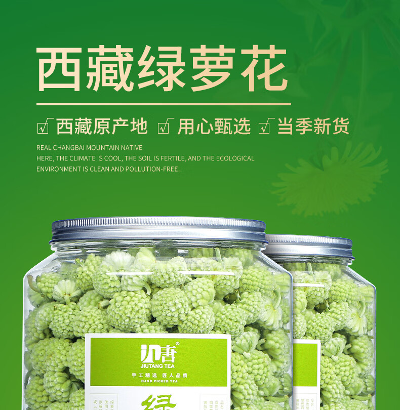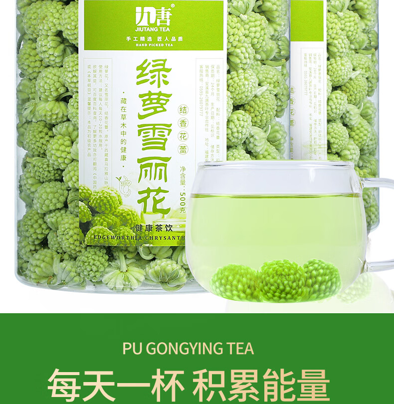 Jiutang (JIUTANG) Green Flower Tea 500g Tibetan Green Basil Flower Soaked Apocynum Tea Sanqing Tea 500g Large Can Buy 2 and Get a Free Water Cup