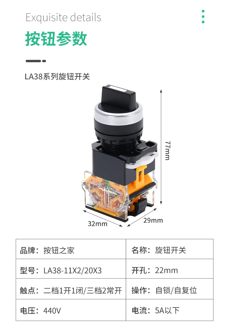 LA38 rotary switch, second/third gear self-locking switch, rotary knob switch, twist power switch 22MM, 3 gears (on-off-on)