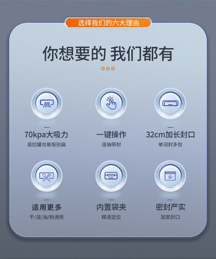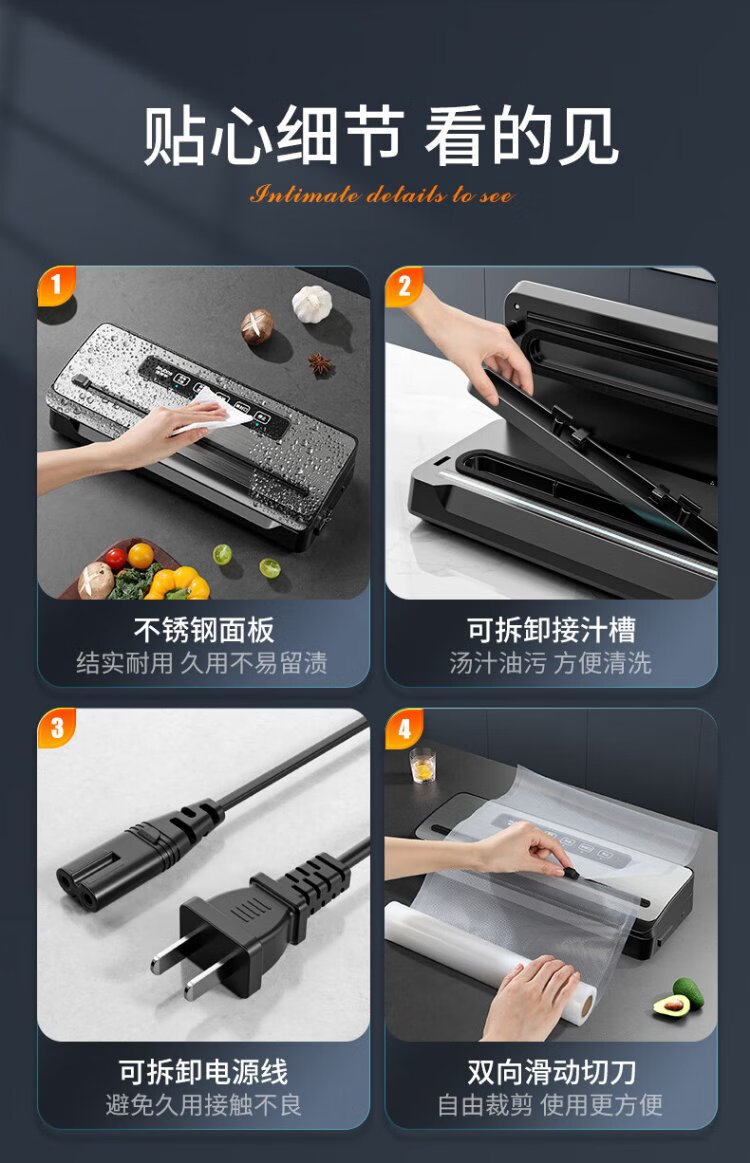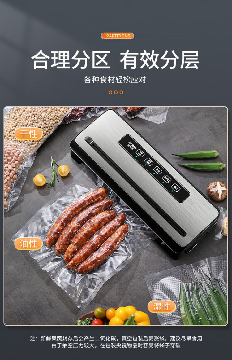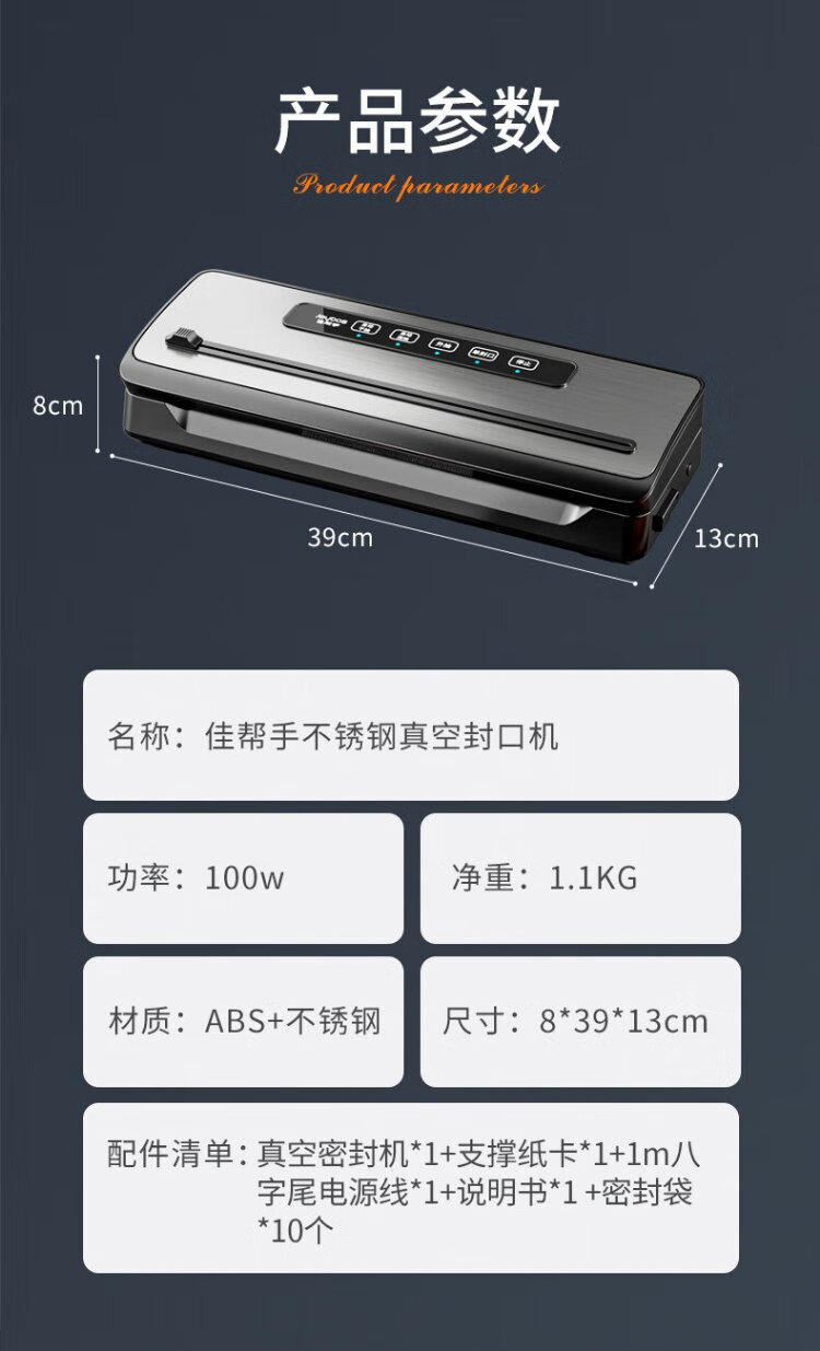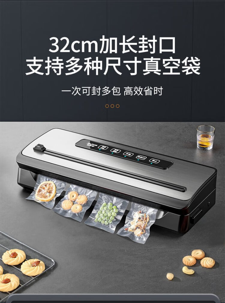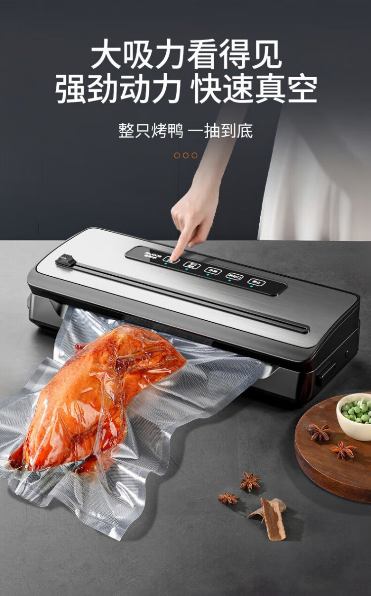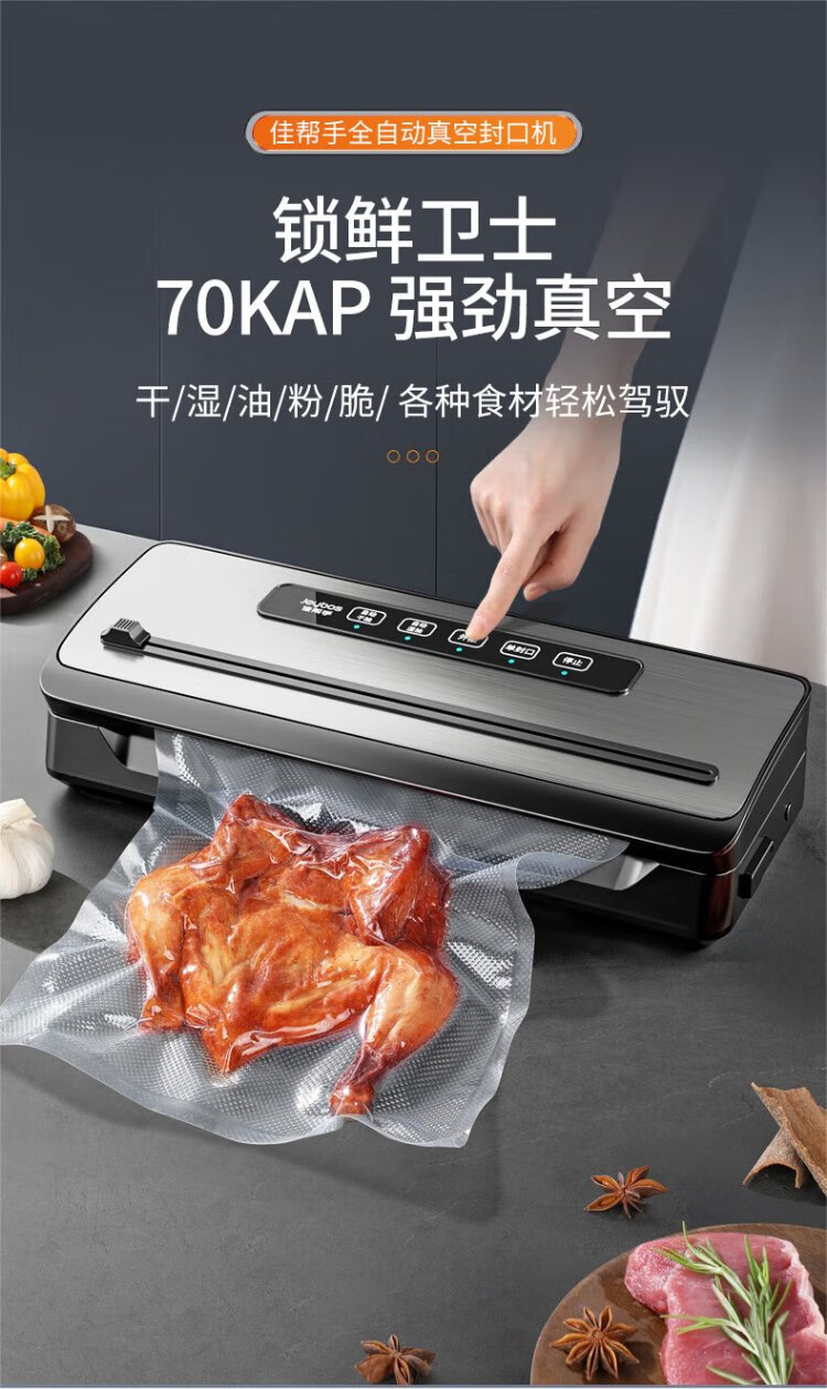 Jia Bangshou Vacuum Sealing Machine Fully Automatic Vacuum Packaging Machine Home Commercial Large Suction Wet and Dry Food Preservation Food Plastic Sealing Machine 70KPA With Cutter + 10 Bags 20*25cm 32cm