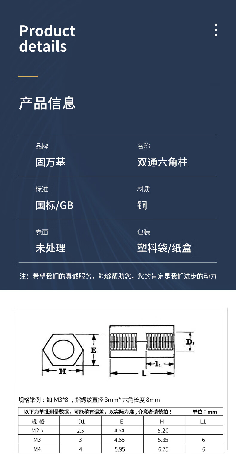Guwanji two-way hexagonal copper column isolation column nut column double-ended hollow stud motherboard chassis copper column screw national standard M4x5 50 pieces