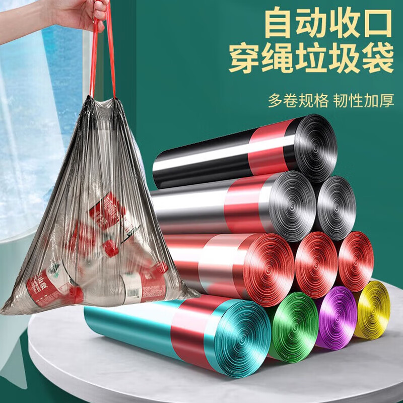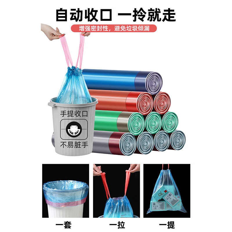 Visitor Extra Thickened Drawstring Garbage Bag Automatic Closing Plastic Bag Drawstring Kitchen Dormitory Portable Garbage Bag 2 Rolls Random Colors