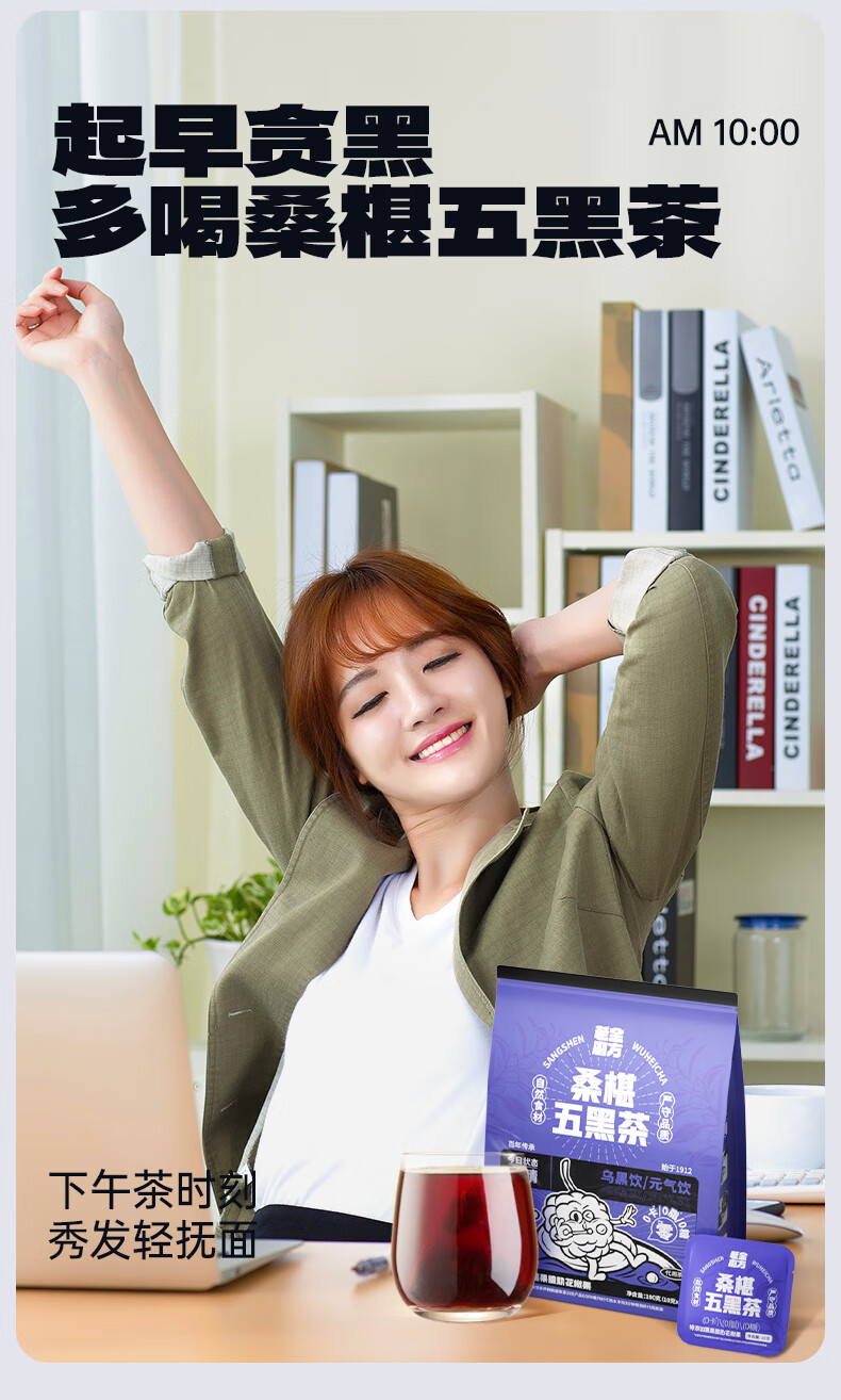 Lao Jin Mo Fang Wu Hei Tea Mulberry Black Wolfberry Nourishing Health Tea Soaked Water Tea Bag Scented Tea Wolfberry Rose Tea Corn Silk Tea 120g + Wu Hei Tea 100g + Five Finger Hair