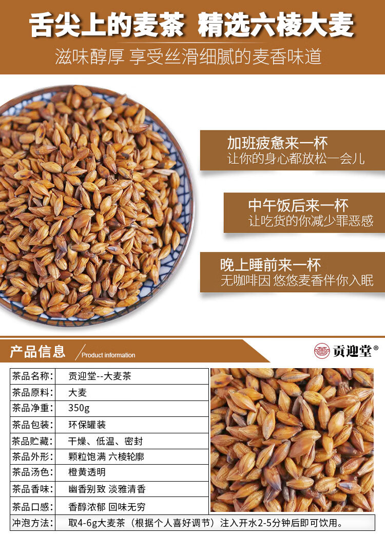 Gongyingtang barley tea original flavor stir-fried with milk, canned and bottled baked special grade pure stir-fried barley for restaurants, 1 can of barley tea 350g + 1 can of tartary buckwheat tea 430g