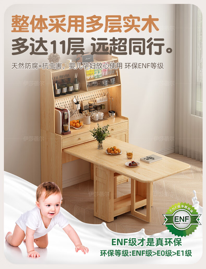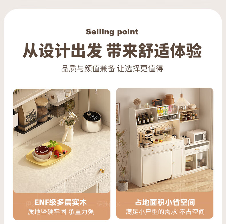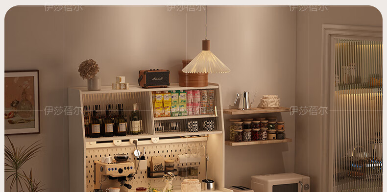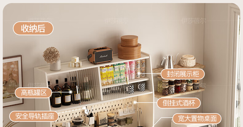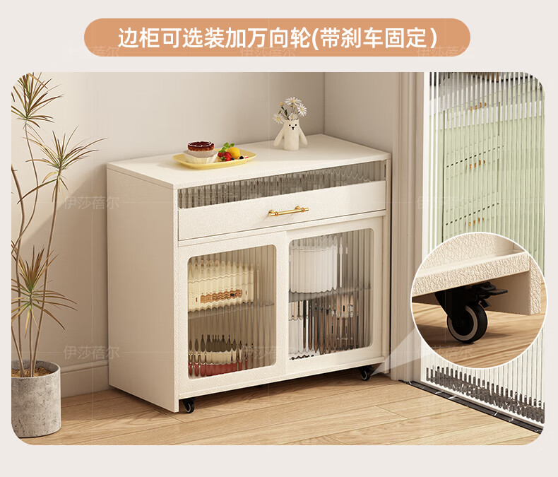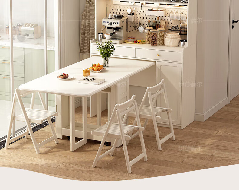 Isabel solid wood sideboard dining table integrated wall storage cabinet wine cabinet modern simple storage cabinet kitchen storage cabinet 0.87m sideboard + 1.2 dining table + dining chairs * 4 white