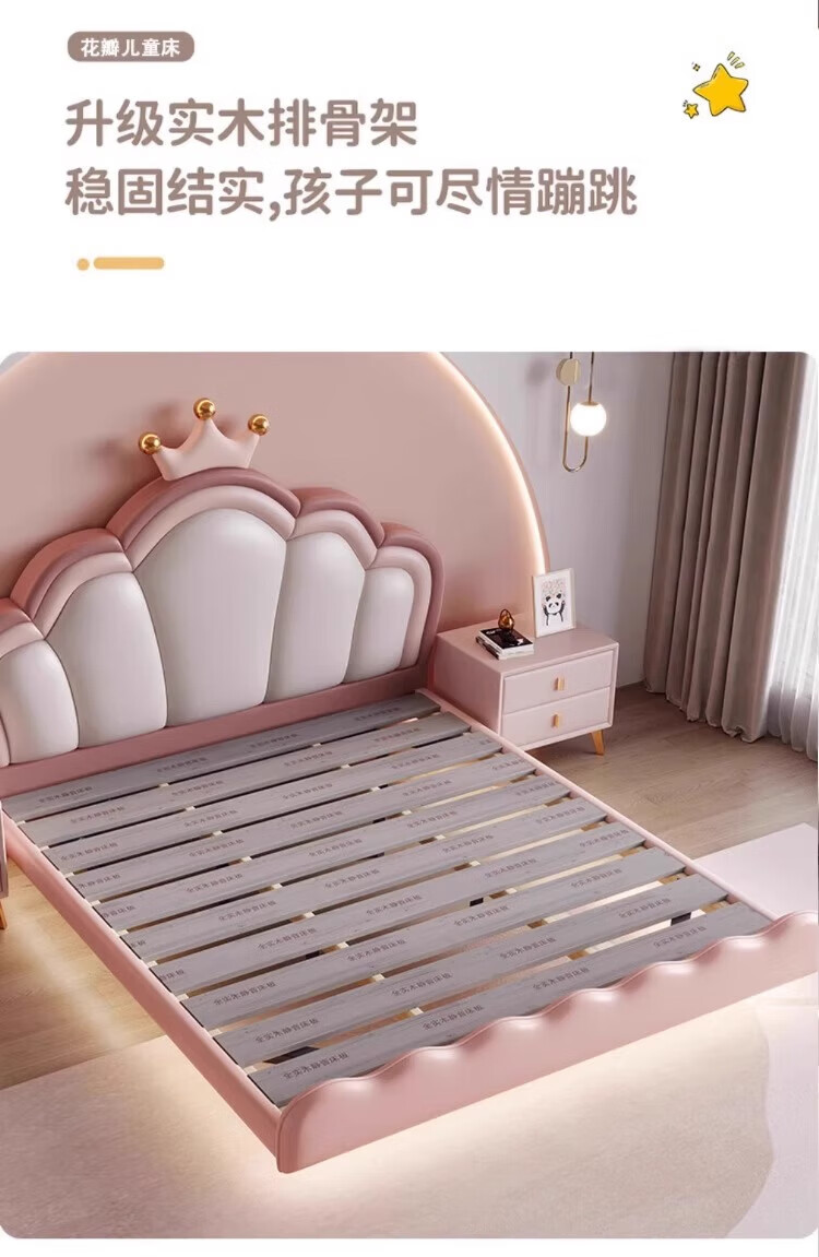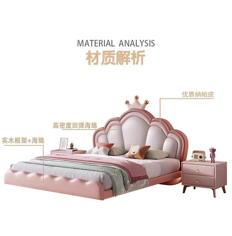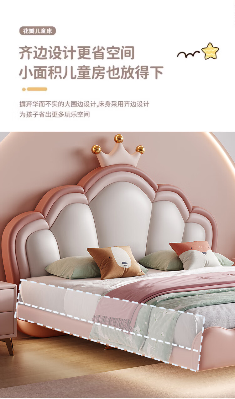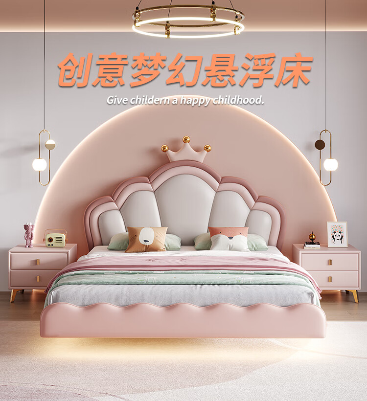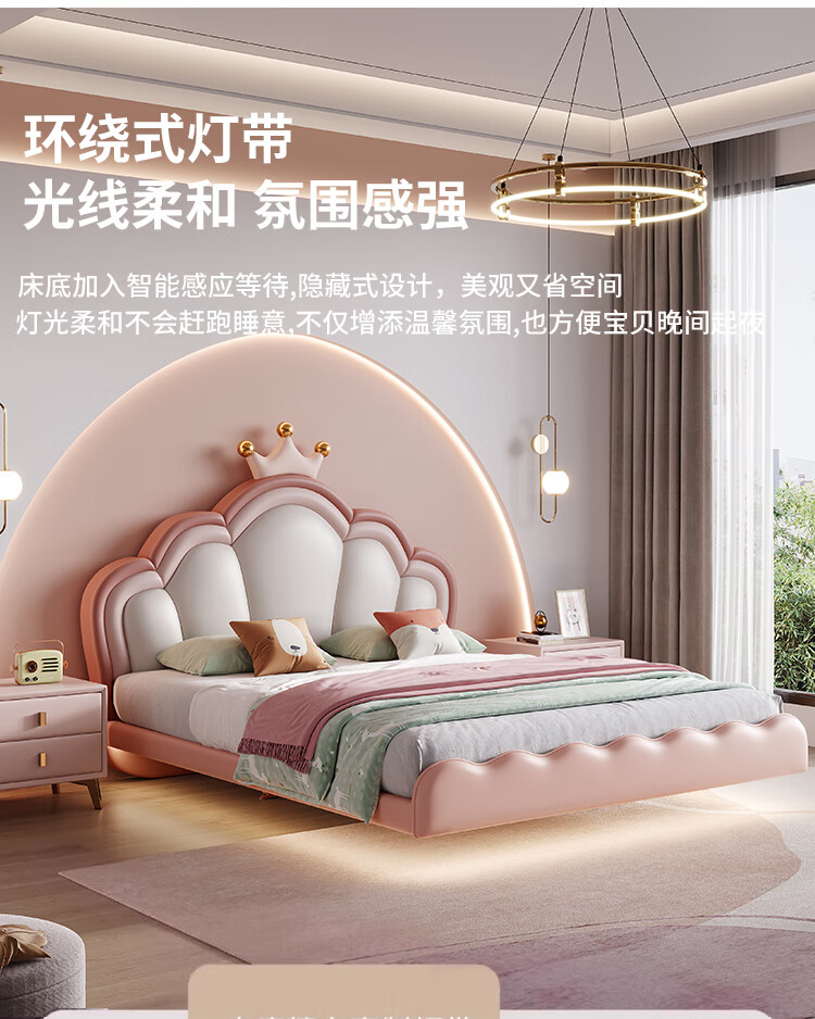 Cream style children's bed girl's dream internet celebrity princess bed cartoon cute shell crown leather girl's suspended bed bed + 20cmT333 fully disassembled spring latex mat + cabinet * 2 1500mm * 2000mm