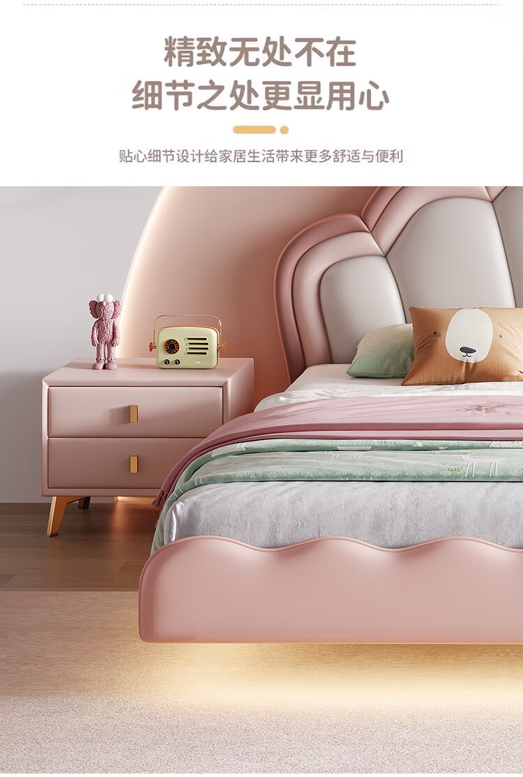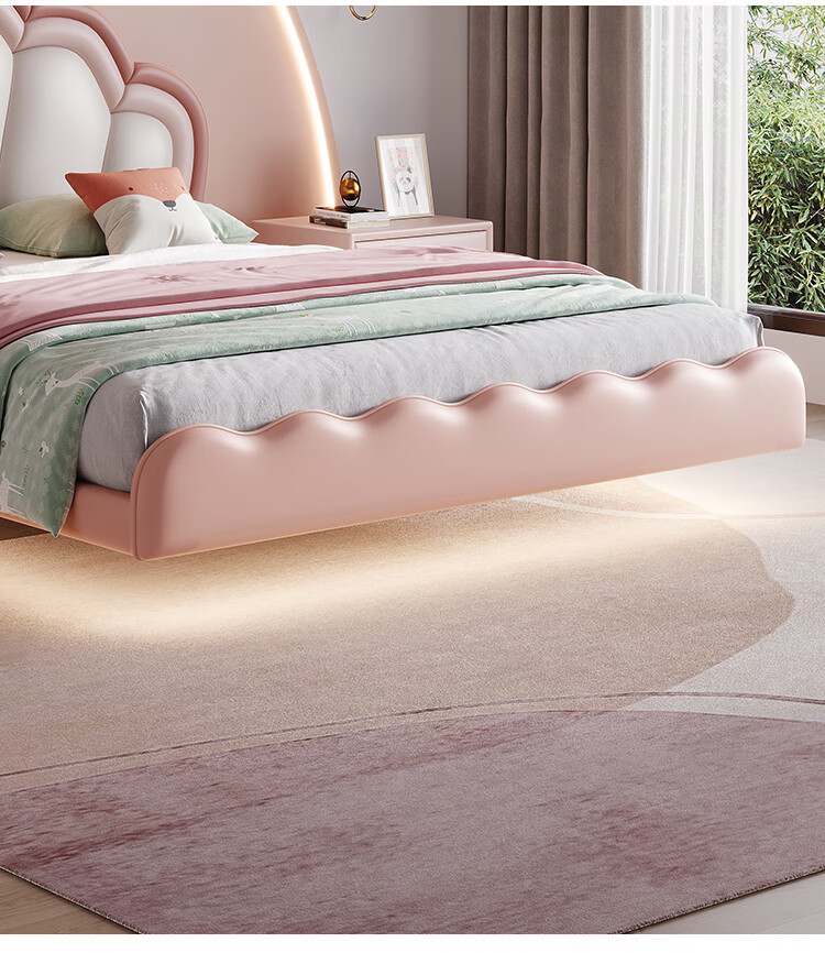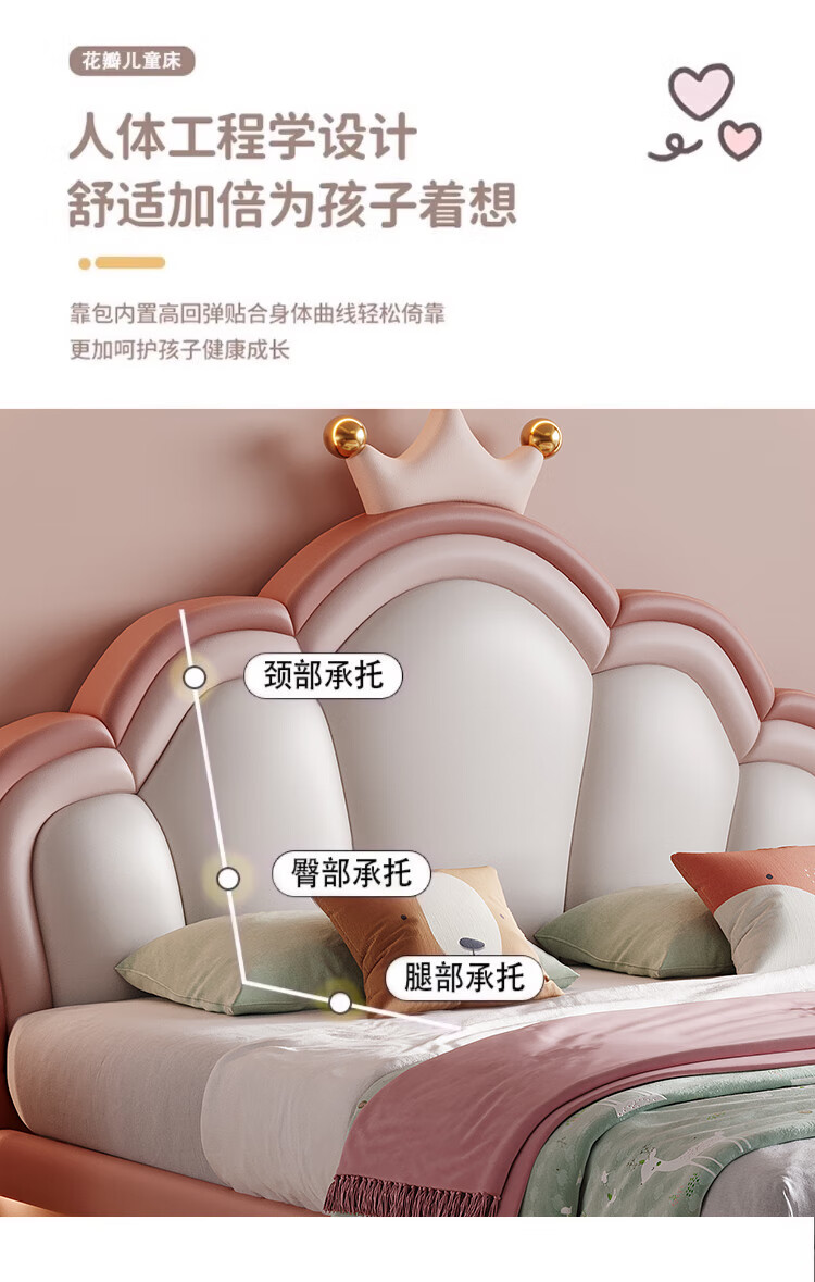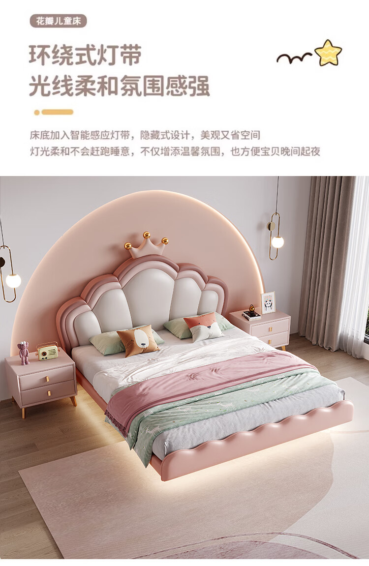 Cream style children's bed girl's dream internet celebrity princess bed cartoon cute shell crown leather girl's suspended bed bed + 20cmT333 fully disassembled spring latex mat + cabinet * 2 1500mm * 2000mm