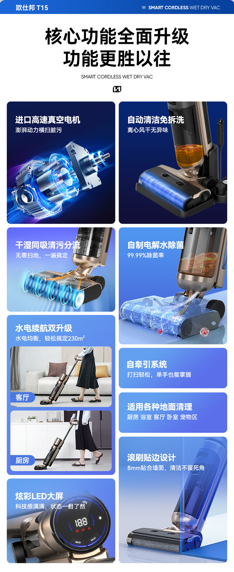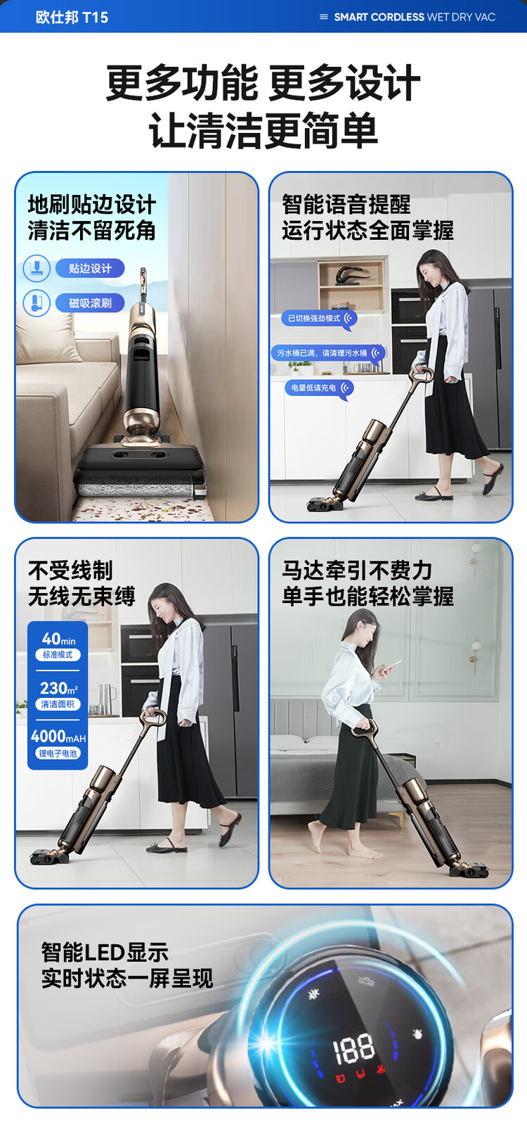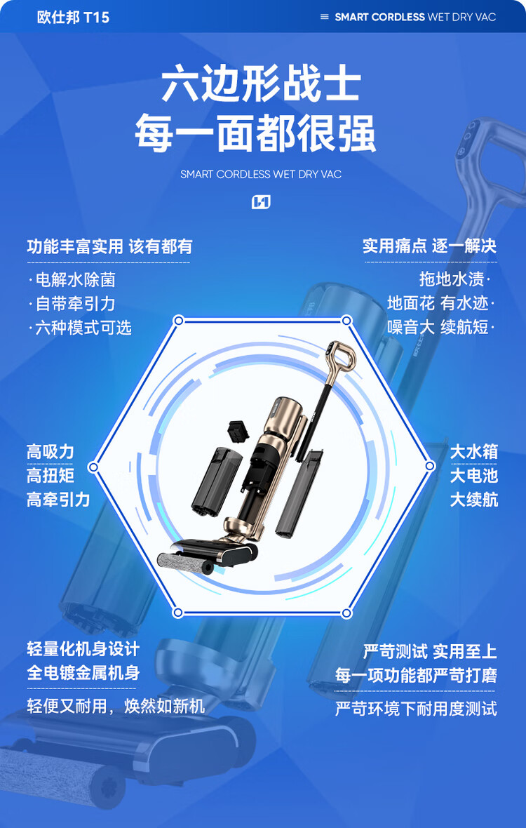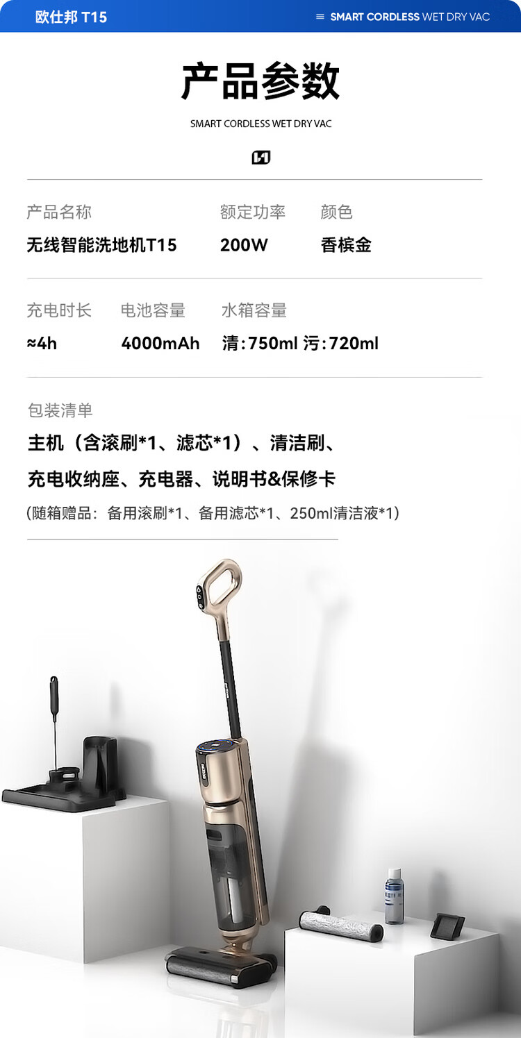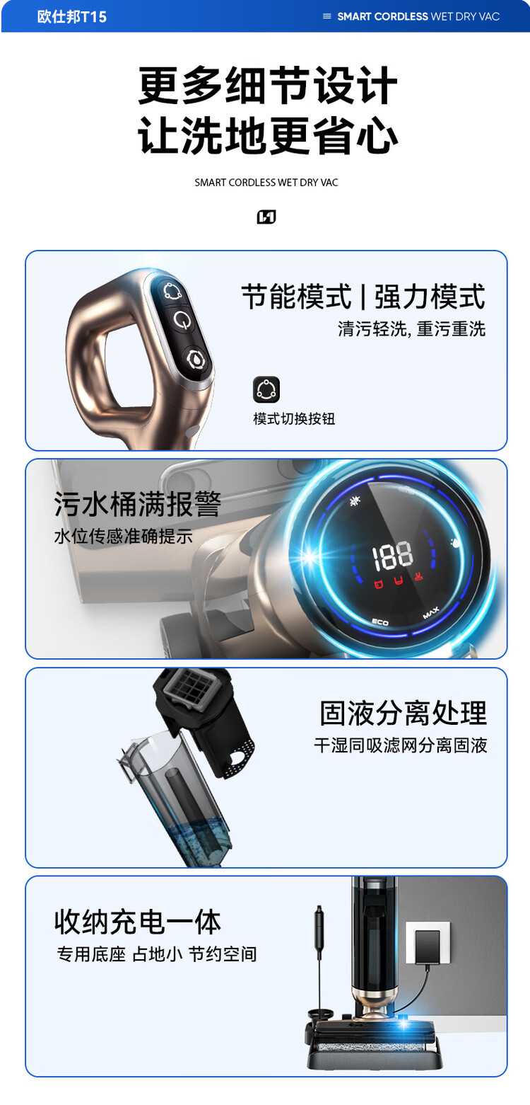 OSBOND floor scrubber T15 suction, mopping, washing and stripping all-in-one sweeping machine 2024 new model fully automatic cleaning home flagship high-end model 16000Pa large suction dual mode