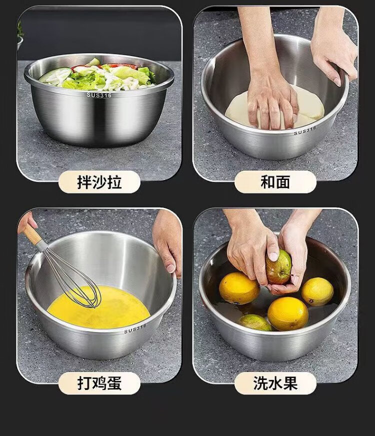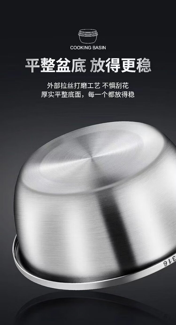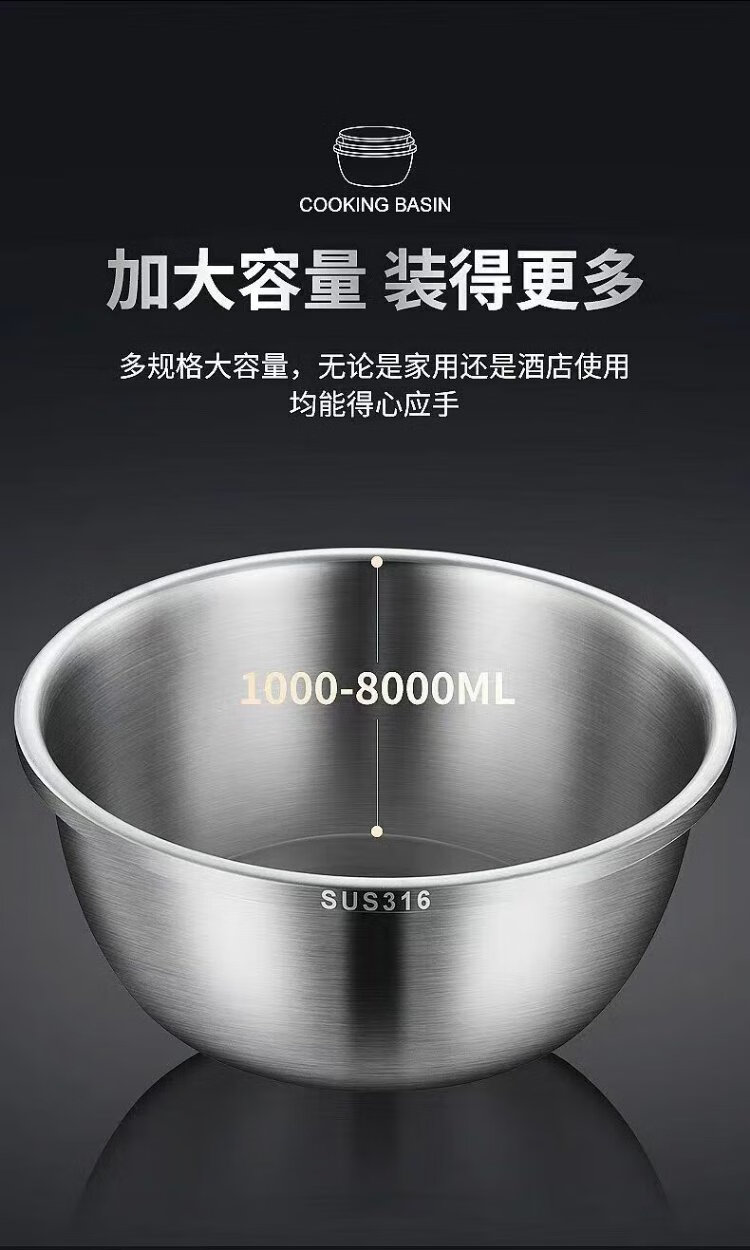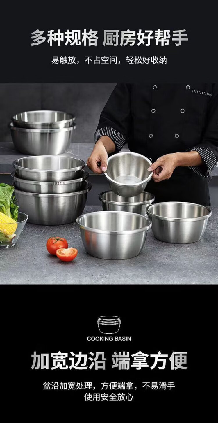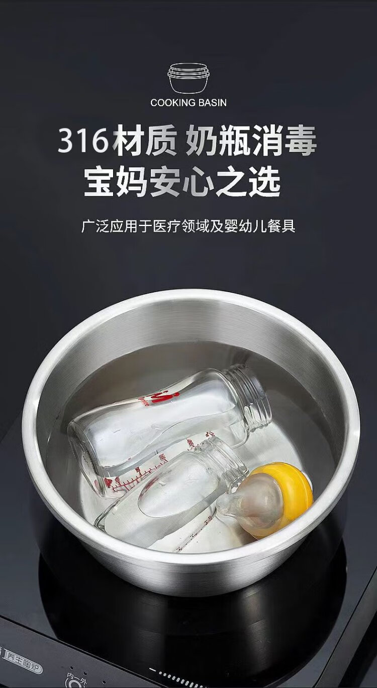 Ten Billion Bear 316 stainless steel basin food grade deepened and thickened household washbasin kitchen egg and basin extra thick soup basin vegetable basin thickened three-piece set 28cm+30cm+32cm