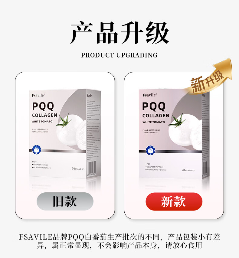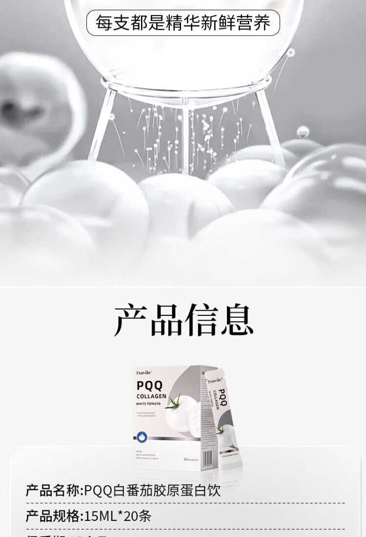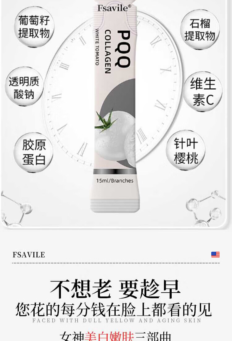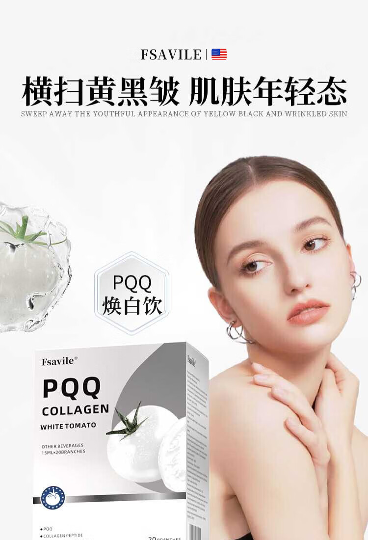 FSAVILE White Tomato PQQ Collagen Peptide Beauty and Beauty, Anti-Aging, Melanosis and Light Spots, Mitochondria Whitening and Anti-sugar Drink, Anti-Age Skin, Natural Glowing, Three Box Prices, 20 Pieces*5 Boxes
