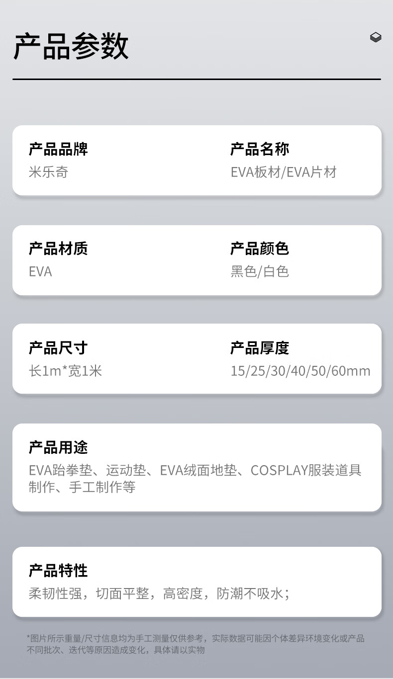 Milechi EVA foam high-density sponge pad glue-free foam pad supports customized packaging lining material waterproof, moisture-proof, anti-collision, shock-absorbing and pressure-resistant pad White-38 hardness EVA 1 meter wide * 1 meter long * 1 mm thick