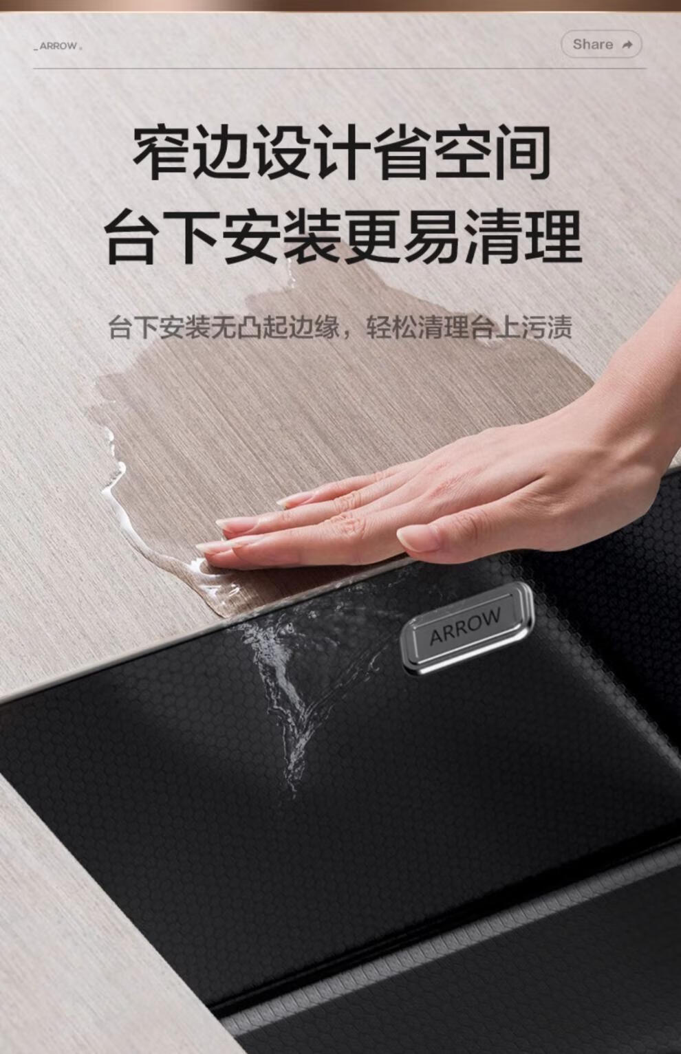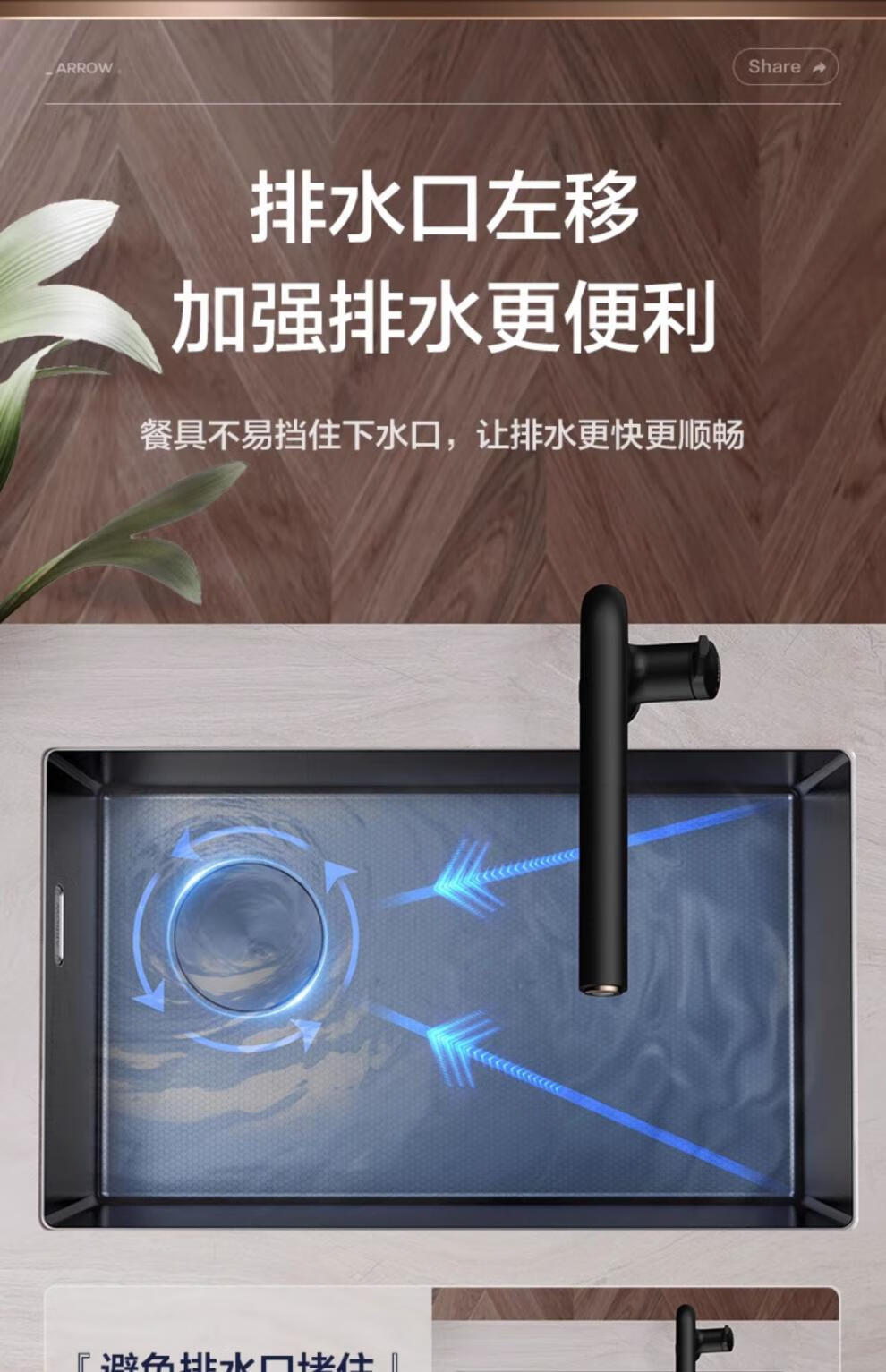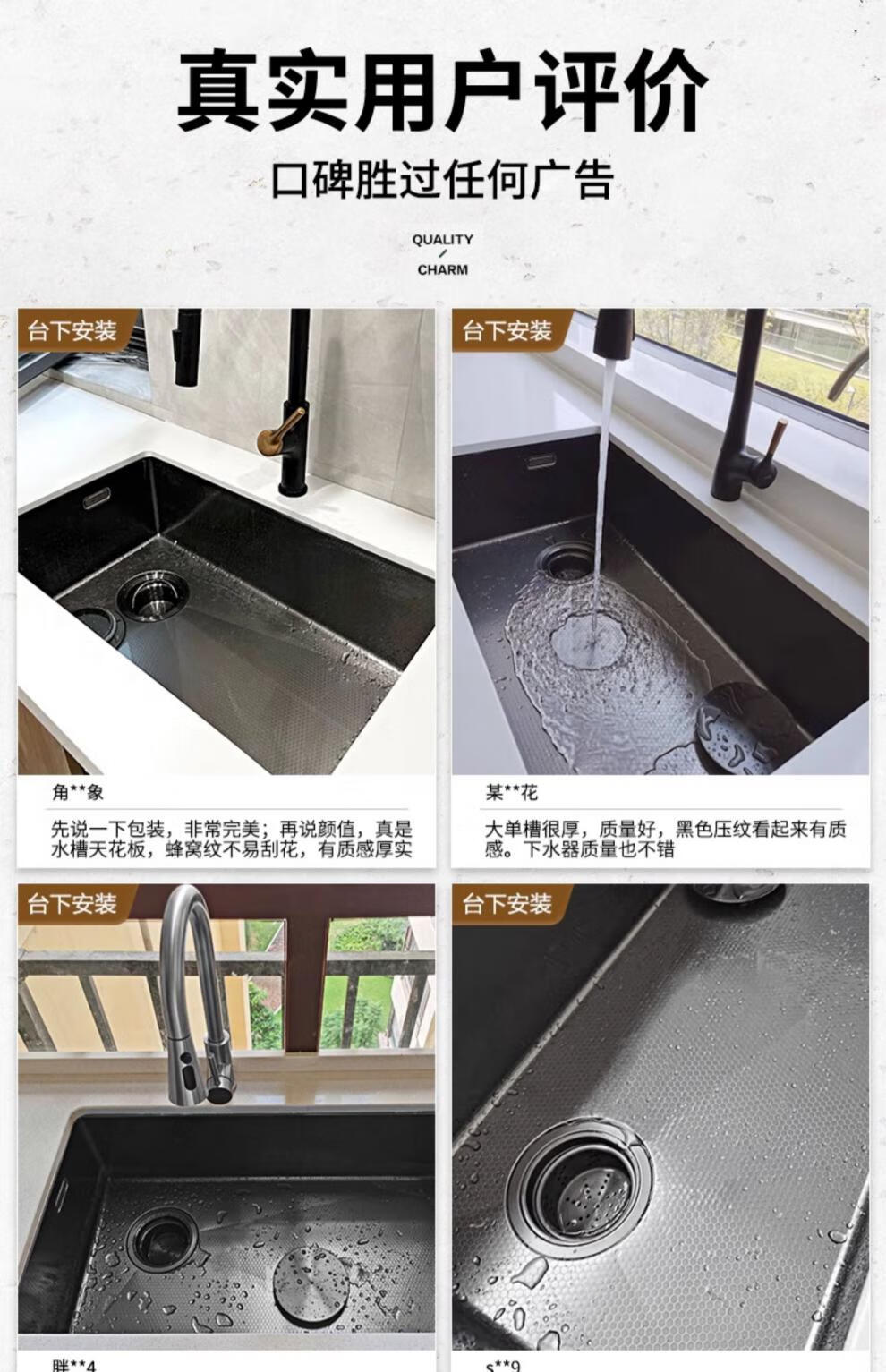 ARROW dishwashing basin 304 stainless steel nano sink kitchen household sink sink under counter basin handmade single slot A 62x43cm丨excluding faucet丨honeycomb pressure